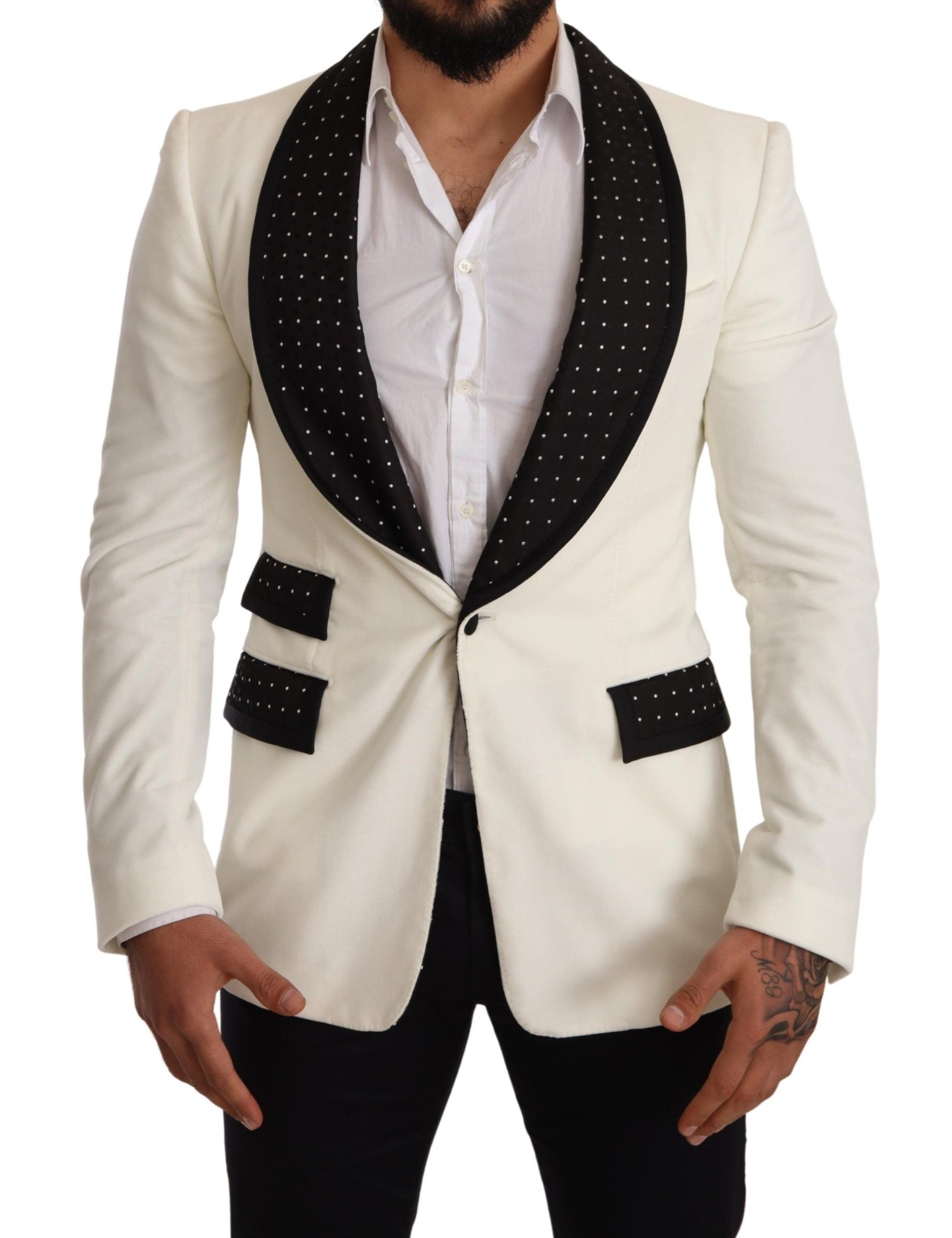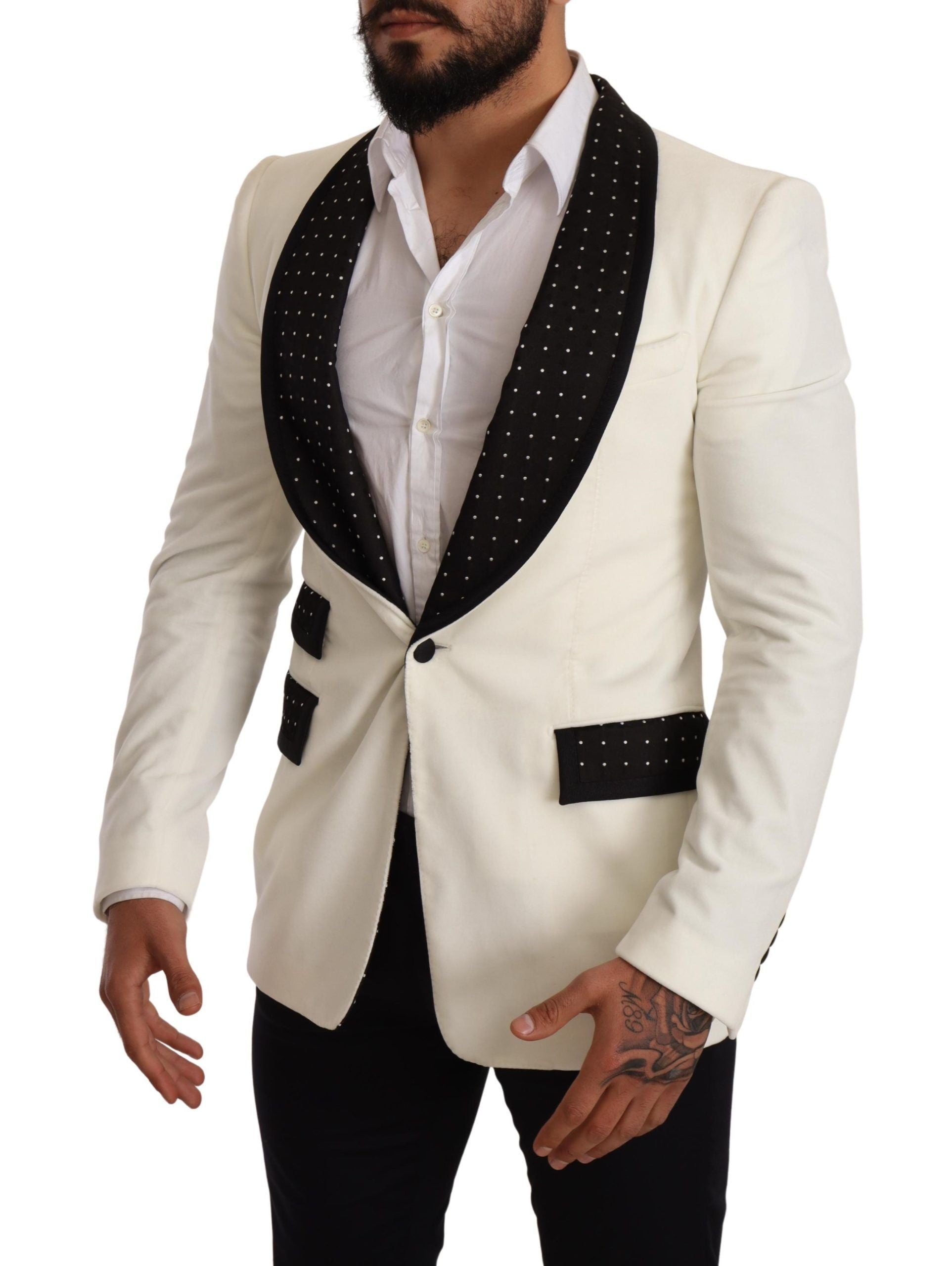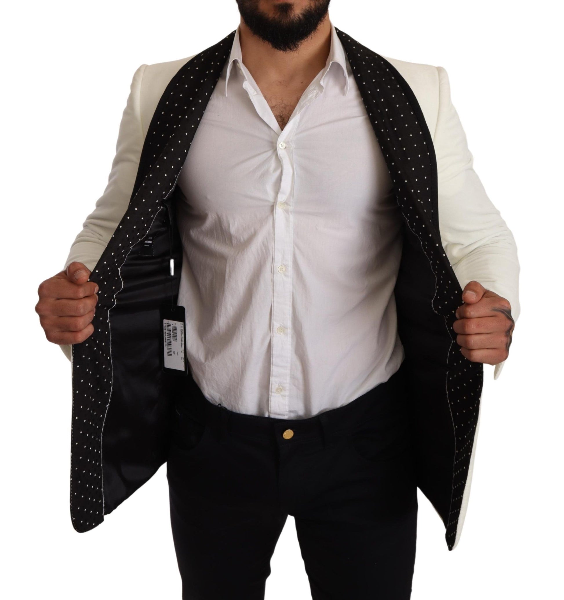 Exude sophistication with this stunning Dolce & Gabbana blazer, perfect for any formal occasion. Crafted with high-quality materials, this slim-fit blazer illustrates luxury with its distinctive dot pattern, shawl lapel style, and meticulous Italian craftsmanship. A must-have for the modern gentleman, this blazer is both timeless and contemporary.