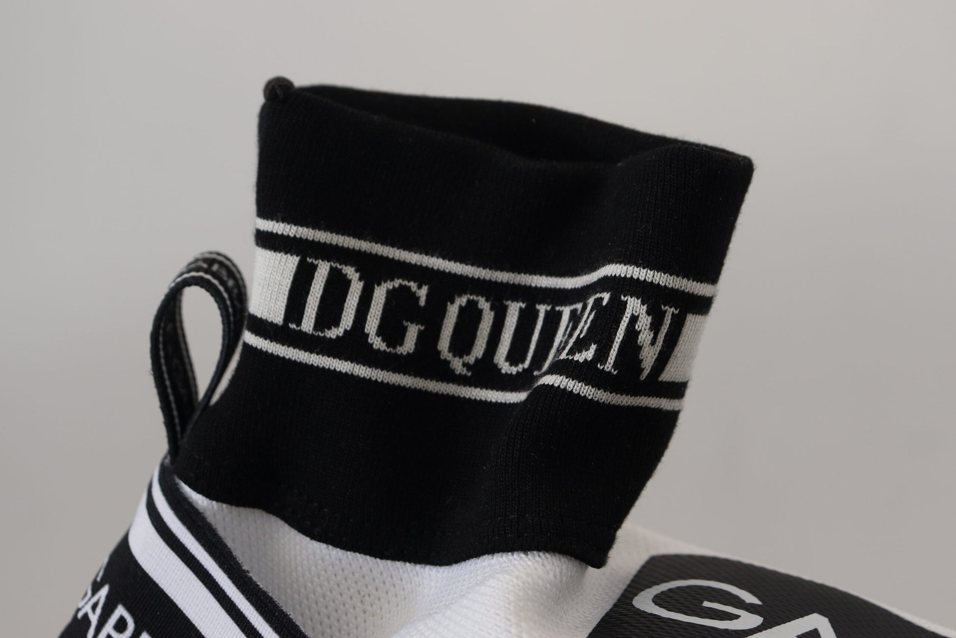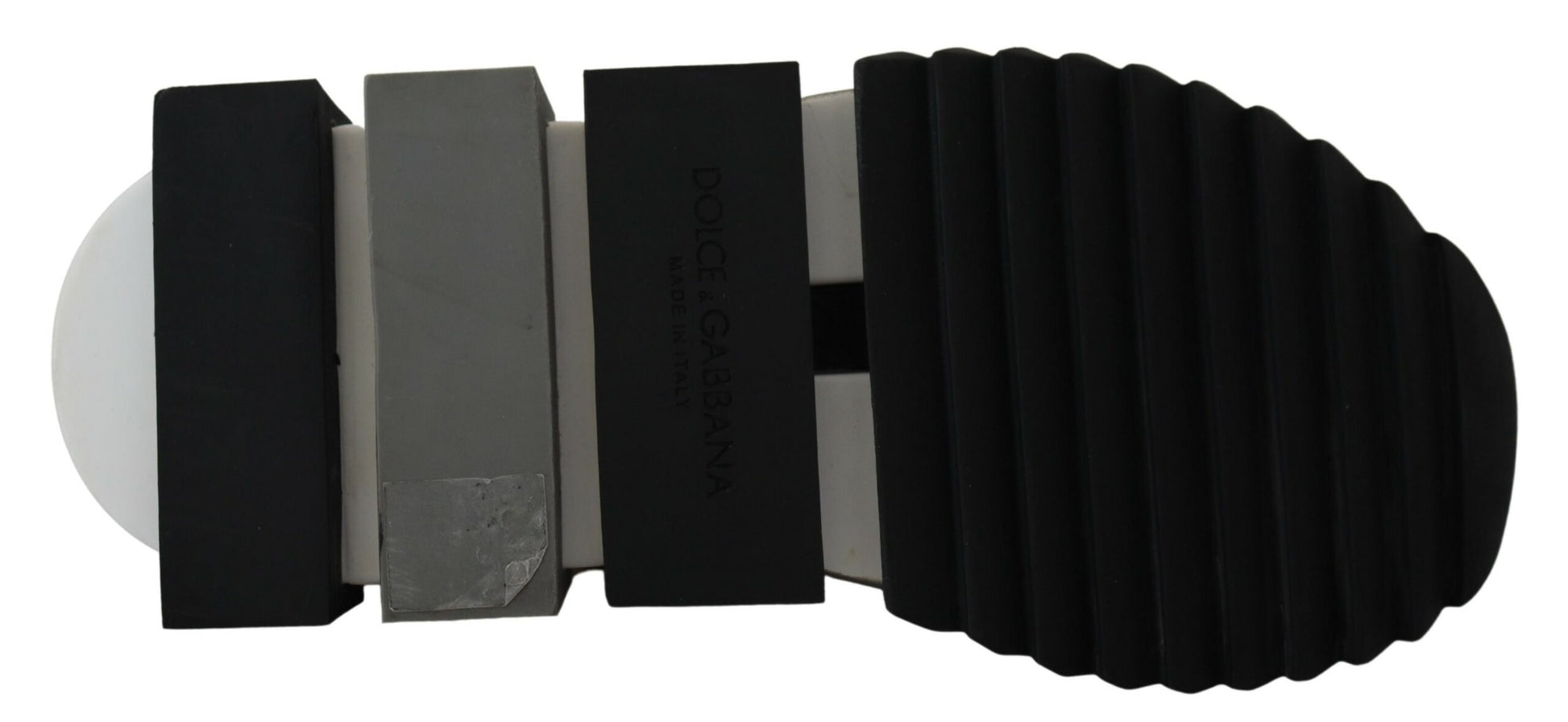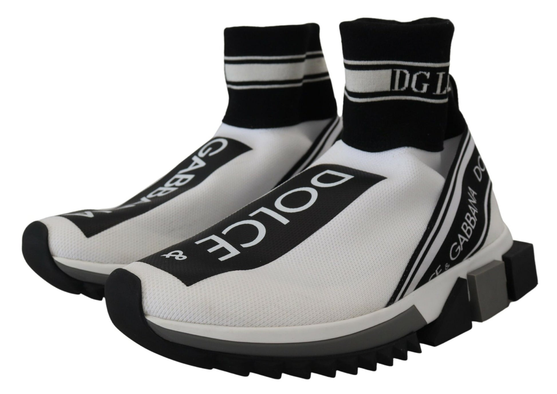 Step into luxury with these elegant and trendy Dolce & Gabbana Sorrento slip-on sneakers. Perfect for adding a touch of class to any outfit, these sneakers boast a sleek black and white design that’s sure to turn heads. With a comfortable round toe, convenient slip-on style, and a durable ridged rubber sole, they provide both style and practicality. Finished with the iconic logo, these shoes are a testament to high craftsmanship, straight from Italy.