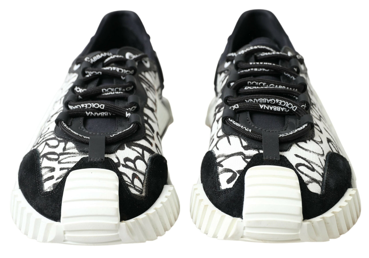 Add an edge to your style with these stunning Dolce & Gabbana NS1 Sneakers. Crafted with a unique blend of materials and designed with luxury in mind, these shoes feature a bold black and white color scheme that makes a statement. The impeccable craftsmanship is evident in every detail, from the tactile fabrics to the secure rubber sole, ensuring both style and comfort. Complete with the unmistakable logo details, these sneakers are made in Italy, promising an aura of elegance and high fashion.