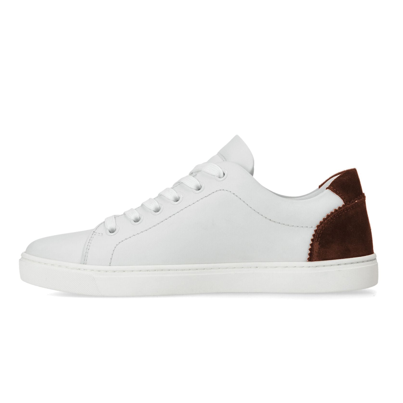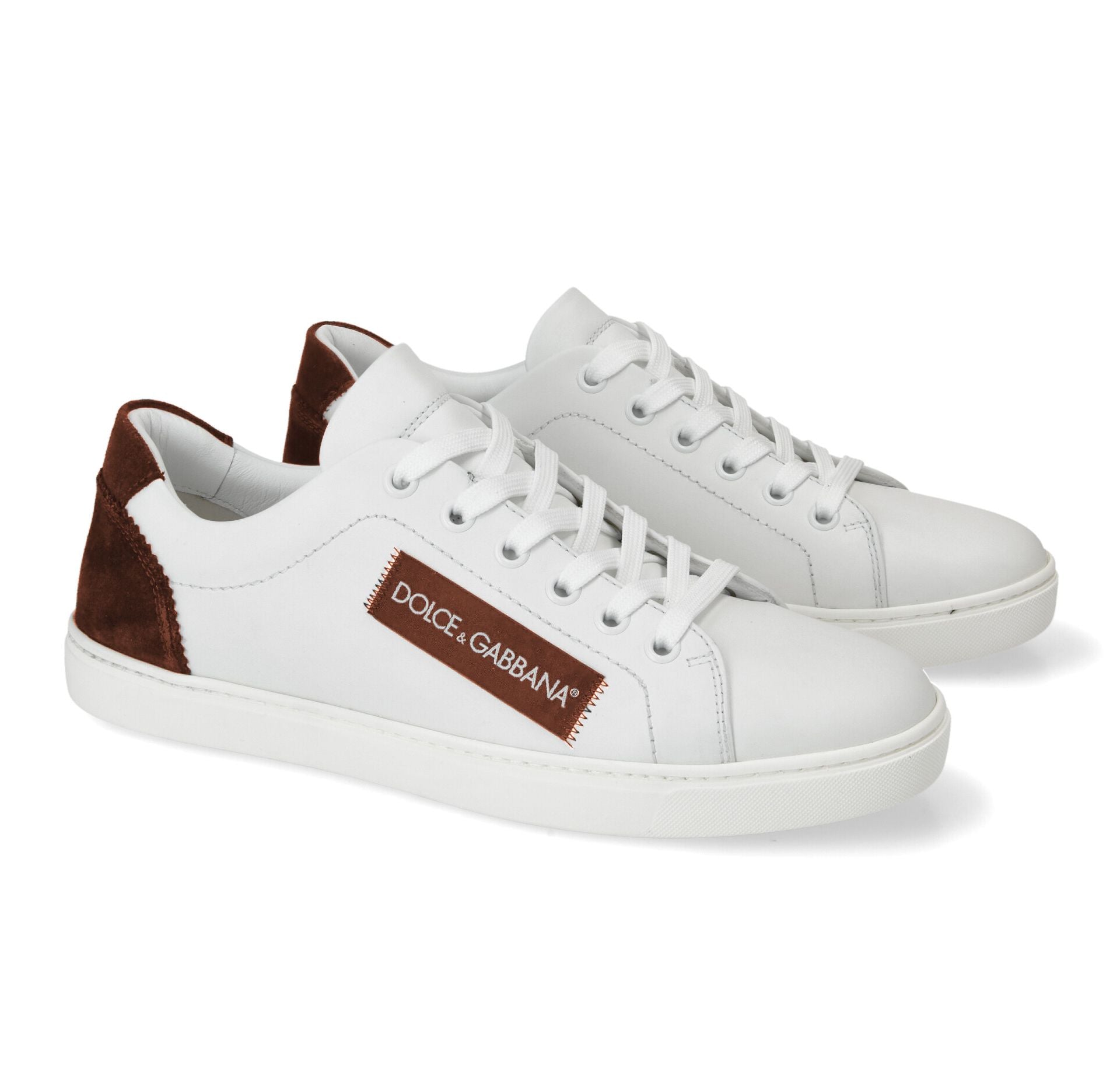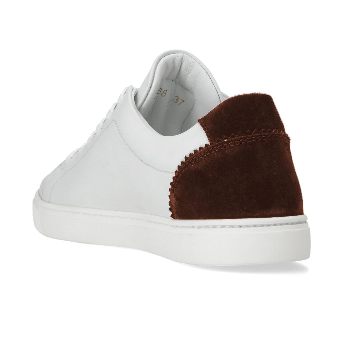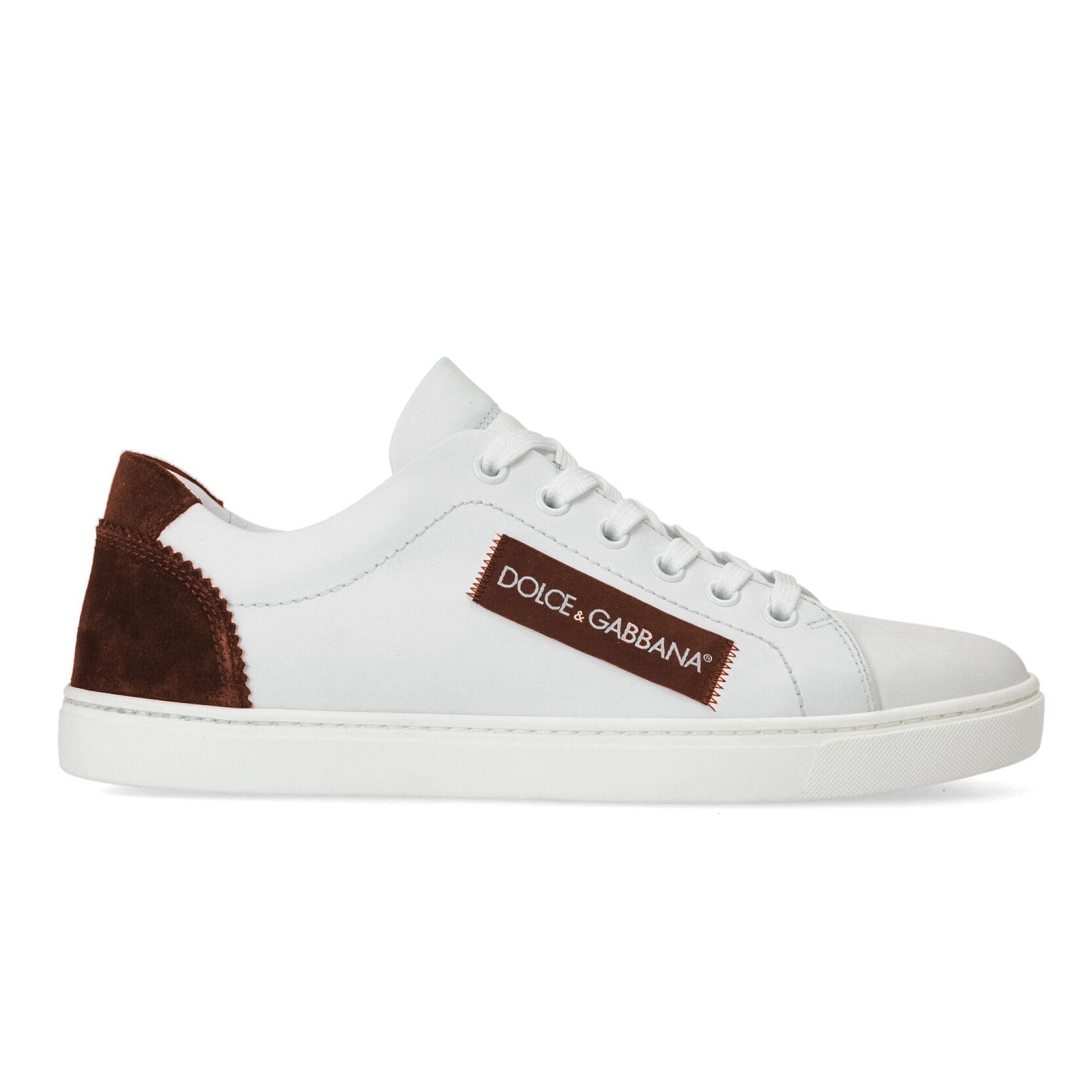 Elevate your sneaker game with these pristine white calfskin sneakers accented with rich brown suede detailing on the heel and a standout fabric logo stitched on the side. Effortlessly combining luxury with a sporty aesthetic, these sneakers are a testament to exceptional Italian craftsmanship.