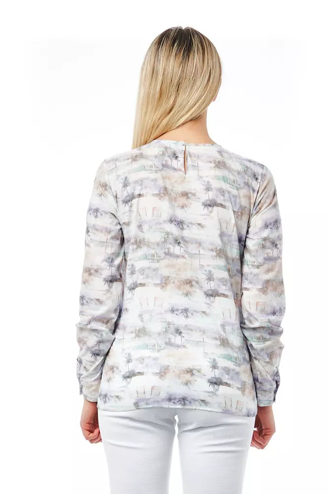 Elegant Fantasy Print Round Neck Cotton Blouse