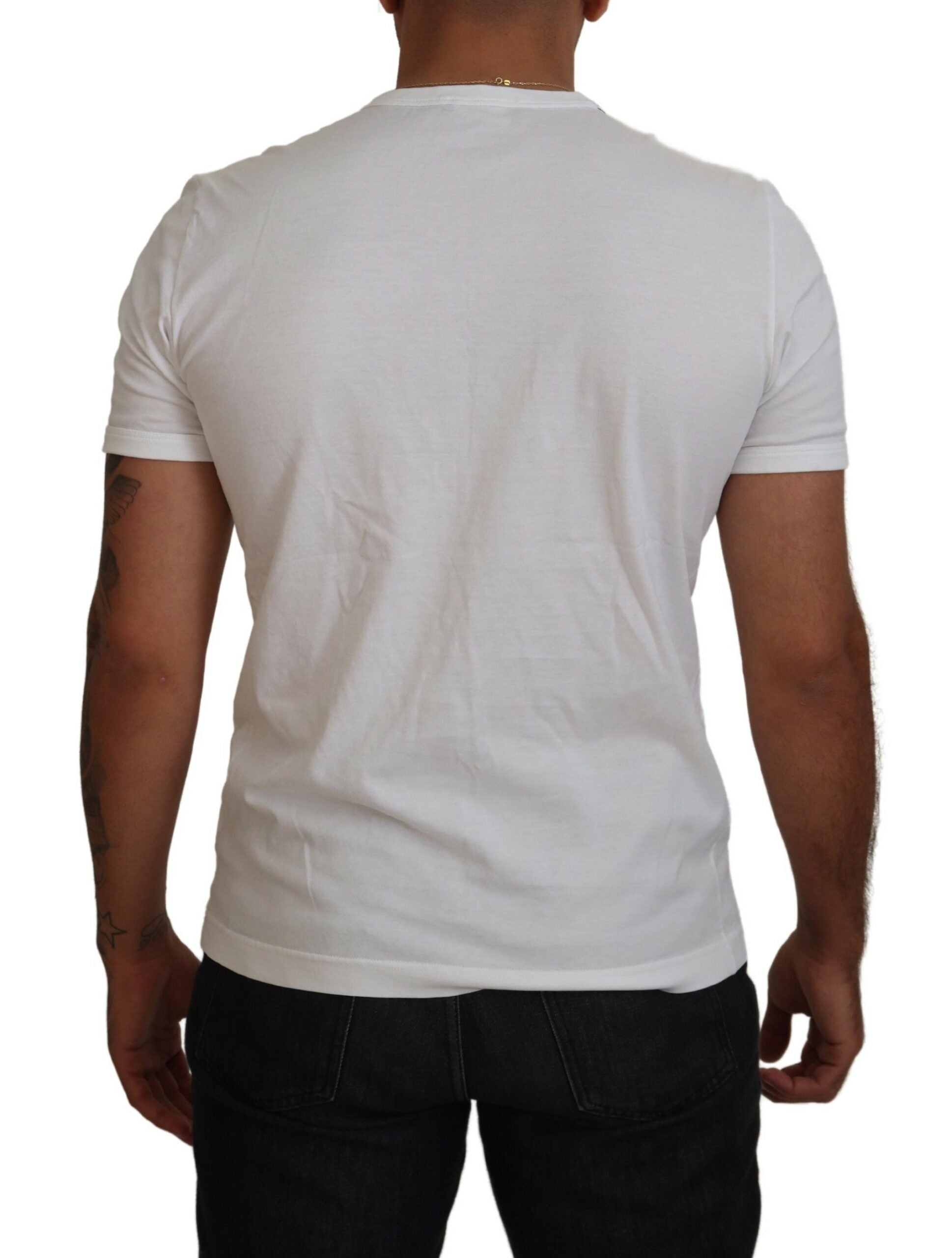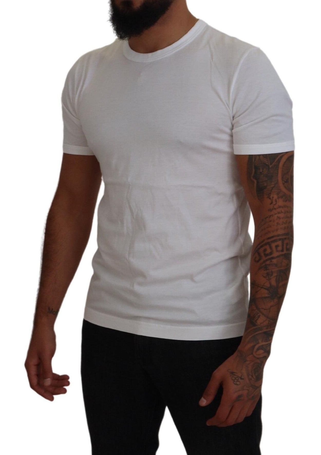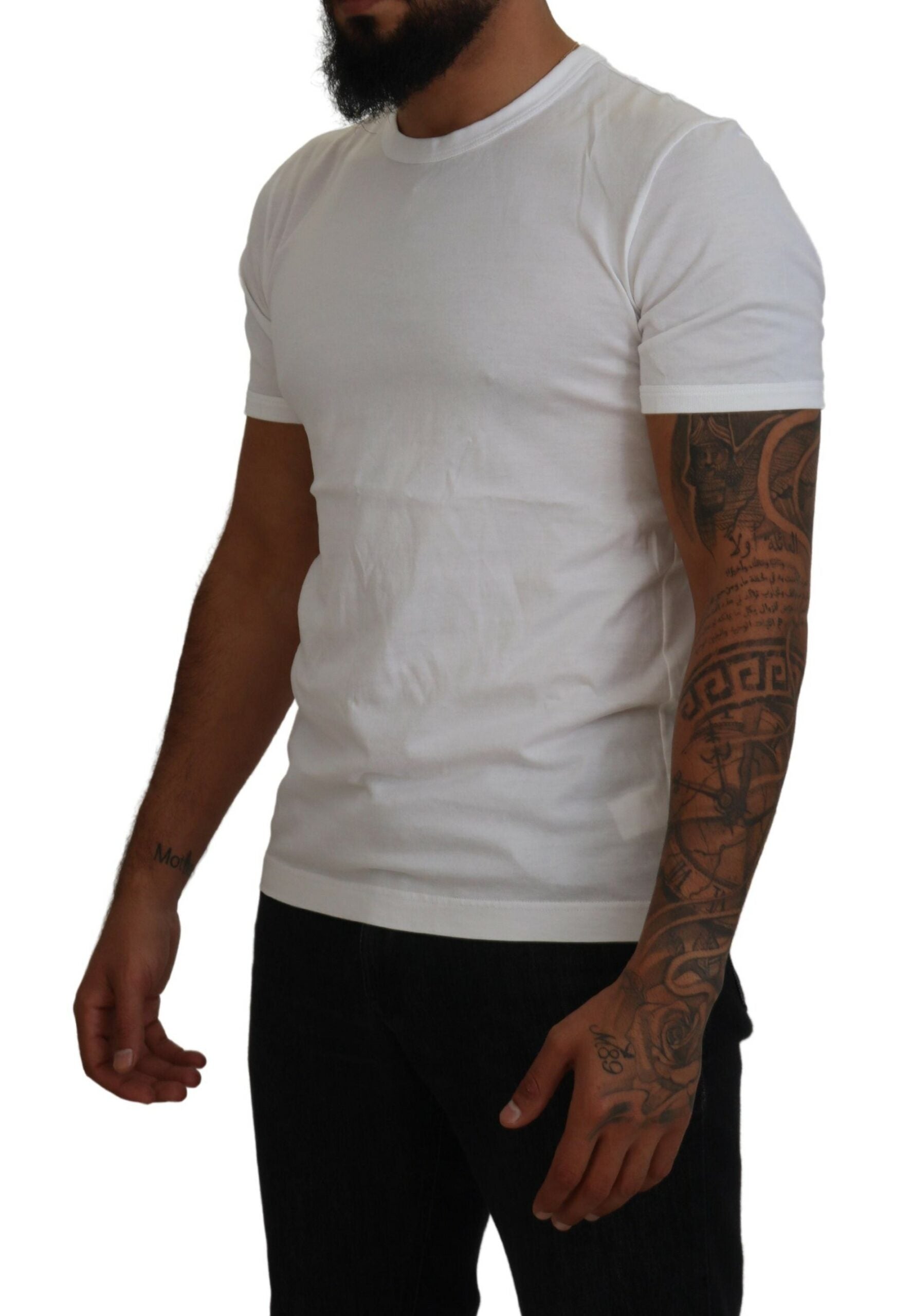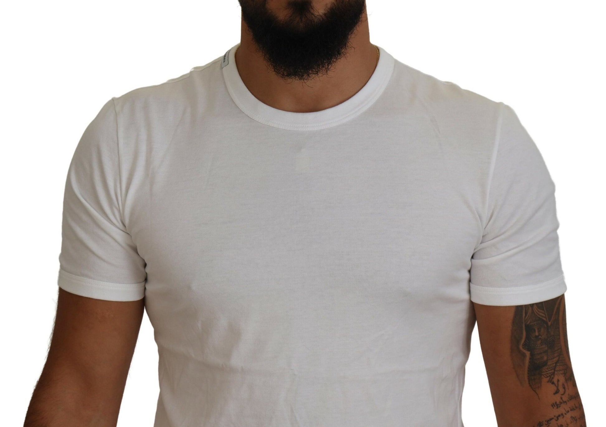 Step up your style game with this elegant white t-shirt from the esteemed Dolce & Gabbana collection. Boasting a sharp crew neckline and classic short sleeves design, this t-shirt is a testament to uncomplicated luxury. Perfect for pairing with jeans or dressing up for an evening out, it’s a versatile addition to any discerning wardrobe. Crafted from pure, soft 100% cotton, this piece ensures both comfort and a flattering fit. Enhance your attire with this timeless, regular fit t-shirt, adorned with the iconic logo detail that adds a hint of prestige to your ensemble. Made with love in Italy, it’s an authentic piece that effortlessly blends heritage with modern style.