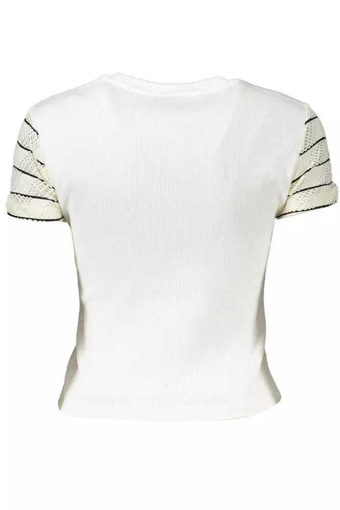 Step out in style with this chic white tee from Desigual. Embrace comfort with a fashionable twist, featuring short sleeves, a classic round neckline, and a striking print that stands out. Contrasting details add an extra touch of sophistication to this everyday essential, while the emblematic Desigual logo subtly brands your look. Perfect for injecting some personality into your casual wardrobe.