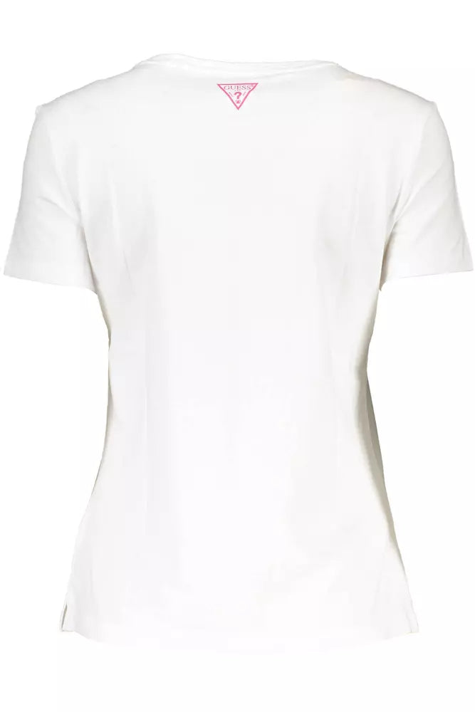 Step up your casualwear with this chic white t-shirt from Guess Jeans, perfect for any fashion-forward wardrobe. Adorned with eye-catching print and delicate embroidery, this top seamlessly blends comfort and style. A subtle logo adds that branded touch, making it an instant staple.