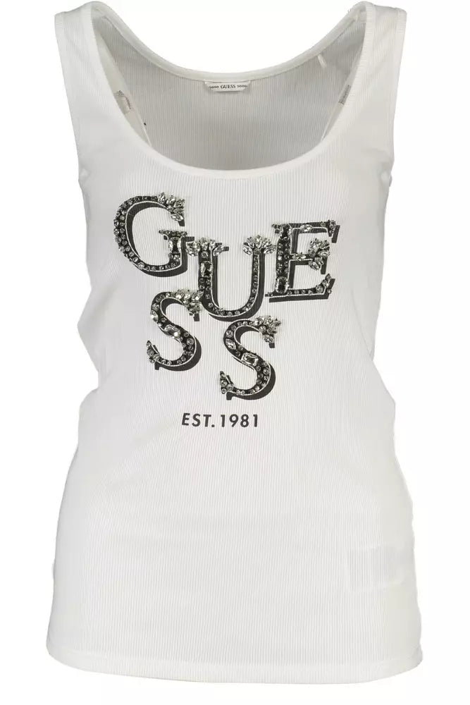 Embrace effortless style with this chic, organic cotton tank top from Guess Jeans. Perfect for those who value sustainability without compromising on fashion. The narrow shoulder cut paired with a wide neckline exudes sophistication, while the tasteful print and logo application add a touch of glamour to your casual look.
