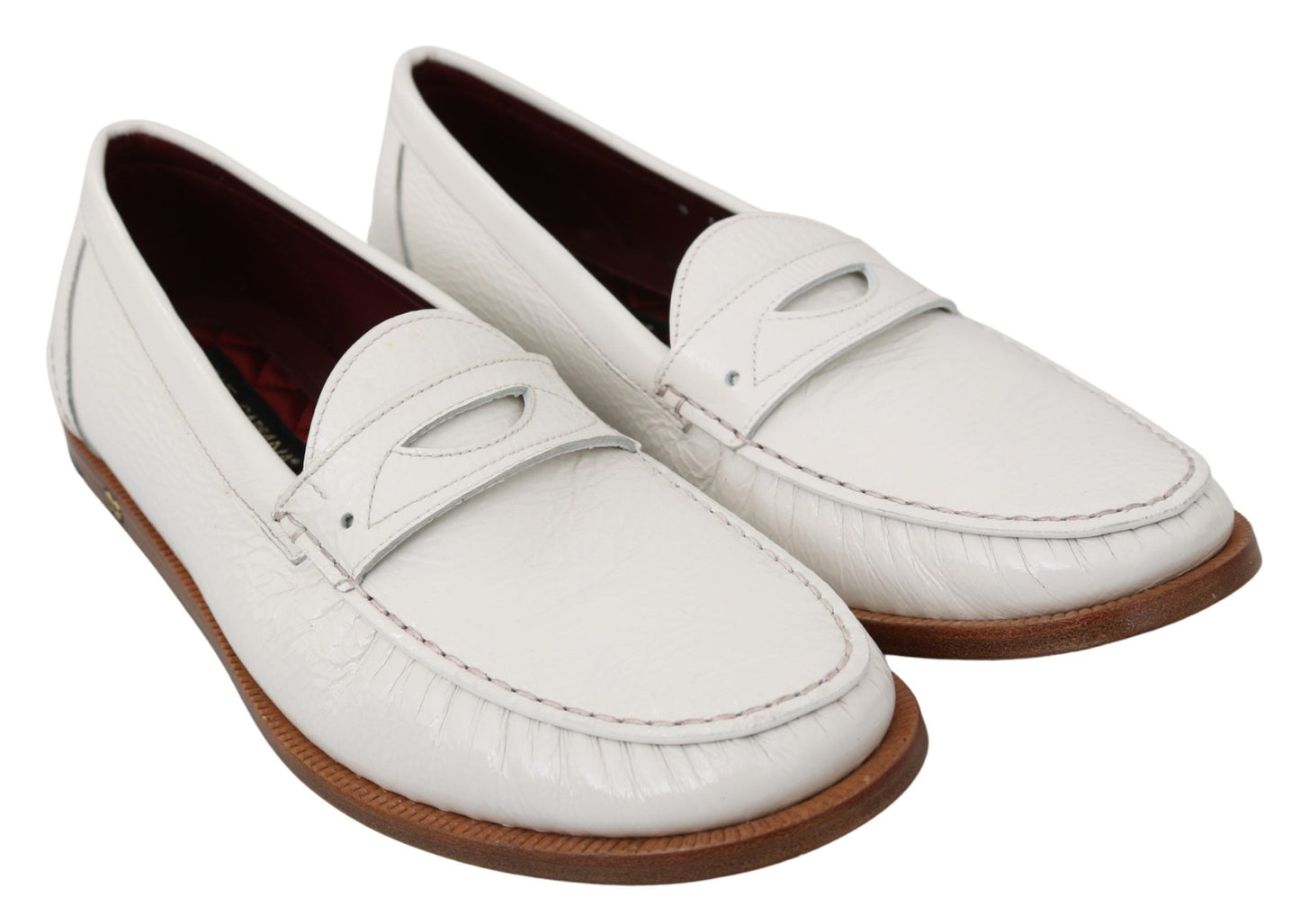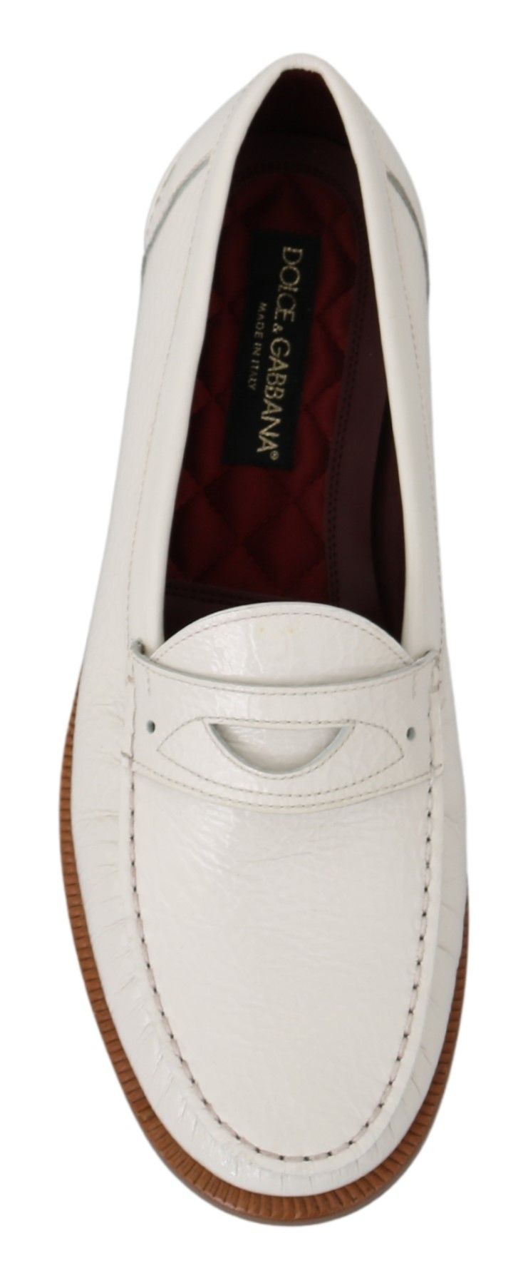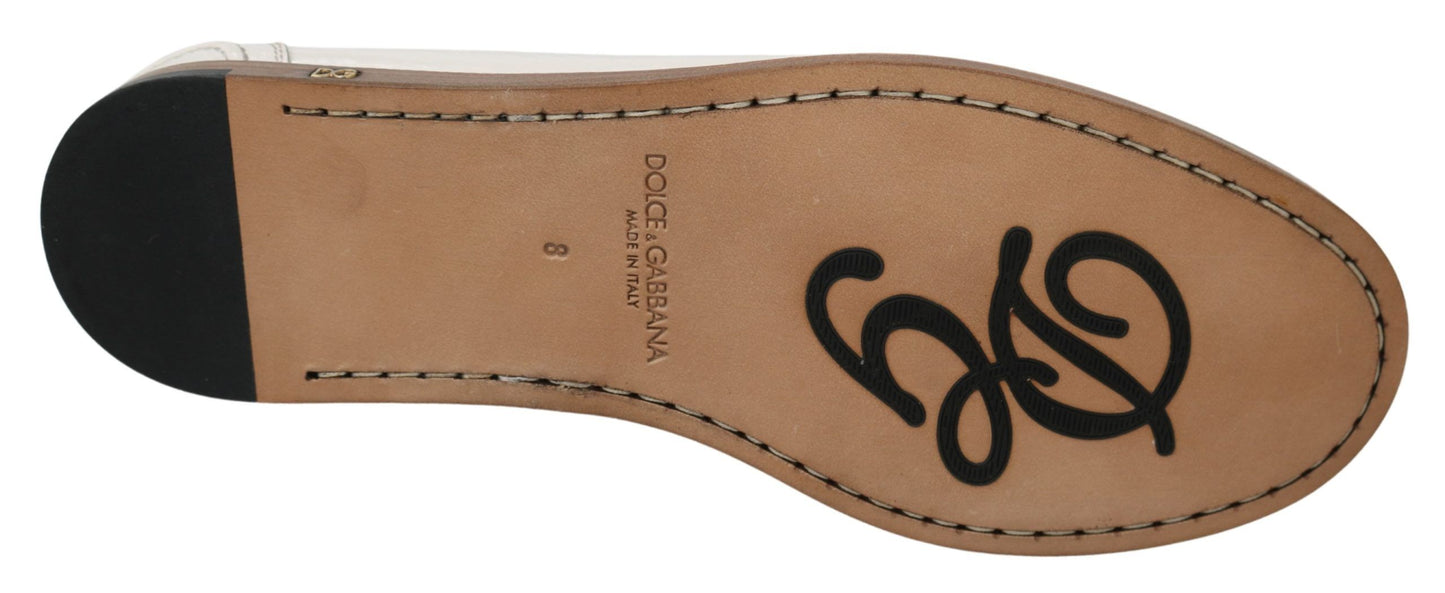 Step into luxury with these exquisite white moccasin slippers from Dolce & Gabbana. Perfect for the man who appreciates high-end craftsmanship and timeless style, these flats glide on effortlessly, offering unmatched comfort and sophistication. Accented by the iconic DG crown logo, they embody elegance with every step. Indulge in the pure leather interior and soft deer skin exterior, crafted with meticulous attention to detail in Italy. These loafers are more than just footwear; they’re a testament to your impeccable taste.