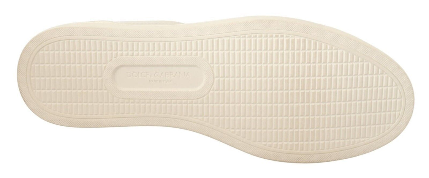 Step into sophistication with these Gorgeous brand new with tags, casual sneakers by Dolce & Gabbana. These white leather sneakers with brown suede accents boast a classic silhouette, complete with a lace-up closure for adjustable comfort. Experience the luxurious touch of a lightly padded leather insole along with the practicality of a rubber sole designed for traction. The attention to detail is evident with the logo details, signaling the high craftsmanship that Dolce & Gabbana is known for. Made in Italy, these sneakers represent both elegance and exclusivity.
