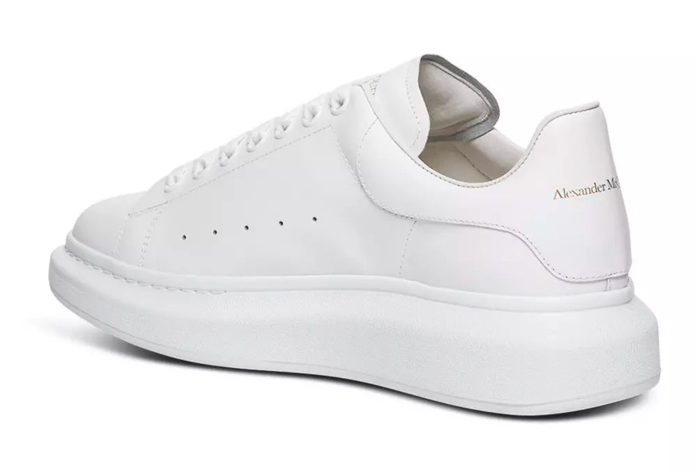 Elegant White Leather Lace-Up Sneakers with Oversized Sole