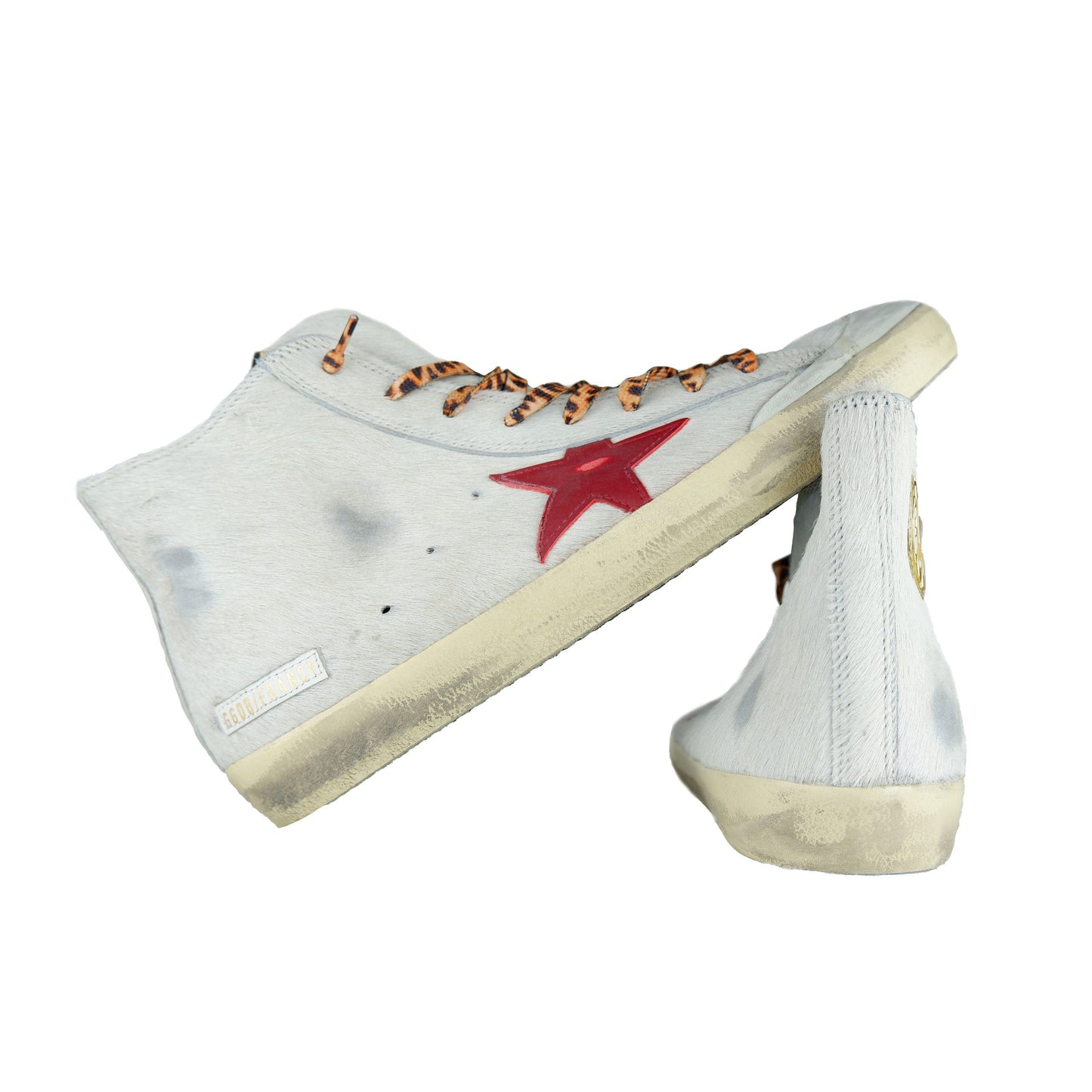 Step into a world of understated luxury with these sophisticated sneakers. Crafted from premium suede calf leather in a stunning silver patent finish, these sneakers feature a silver cracked leather heel counter that adds a touch of unique elegance. A striking red suede star logo provides a pop of color, while the 100% leather composition ensures durability and comfort. Resting on a robust rubber sole, these shoes promise both style and practicality. Each step in these fine Italian sneakers speaks volumes of your impeccable taste in footwear.
