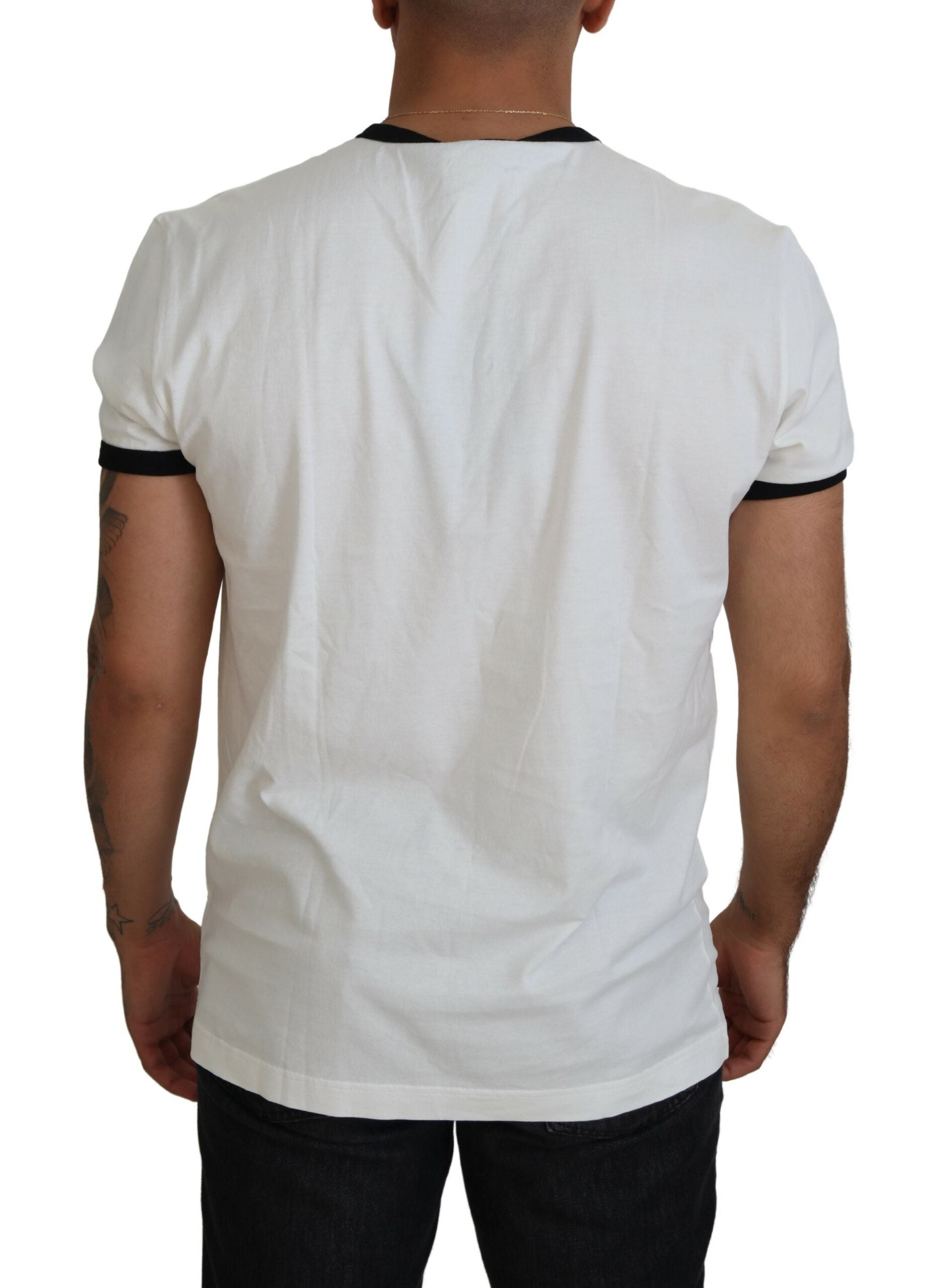 Exude effortless style with this impeccably crafted Dolce & Gabbana short sleeve T-shirt. A classic addition to your casual wardrobe, it boasts a regular fit and a bold logo print for a touch of designer appeal. Made in Italy, this tee is a must-have for those who appreciate luxury and comfort.
