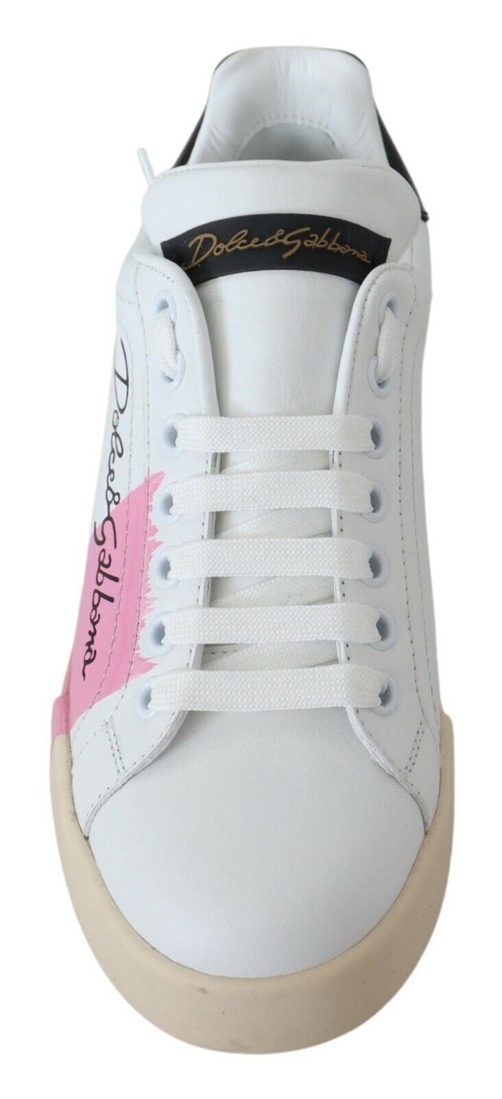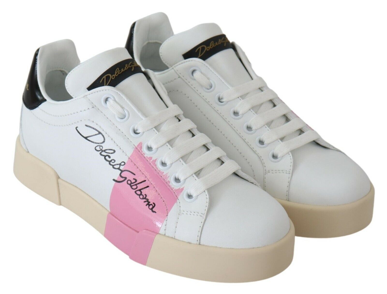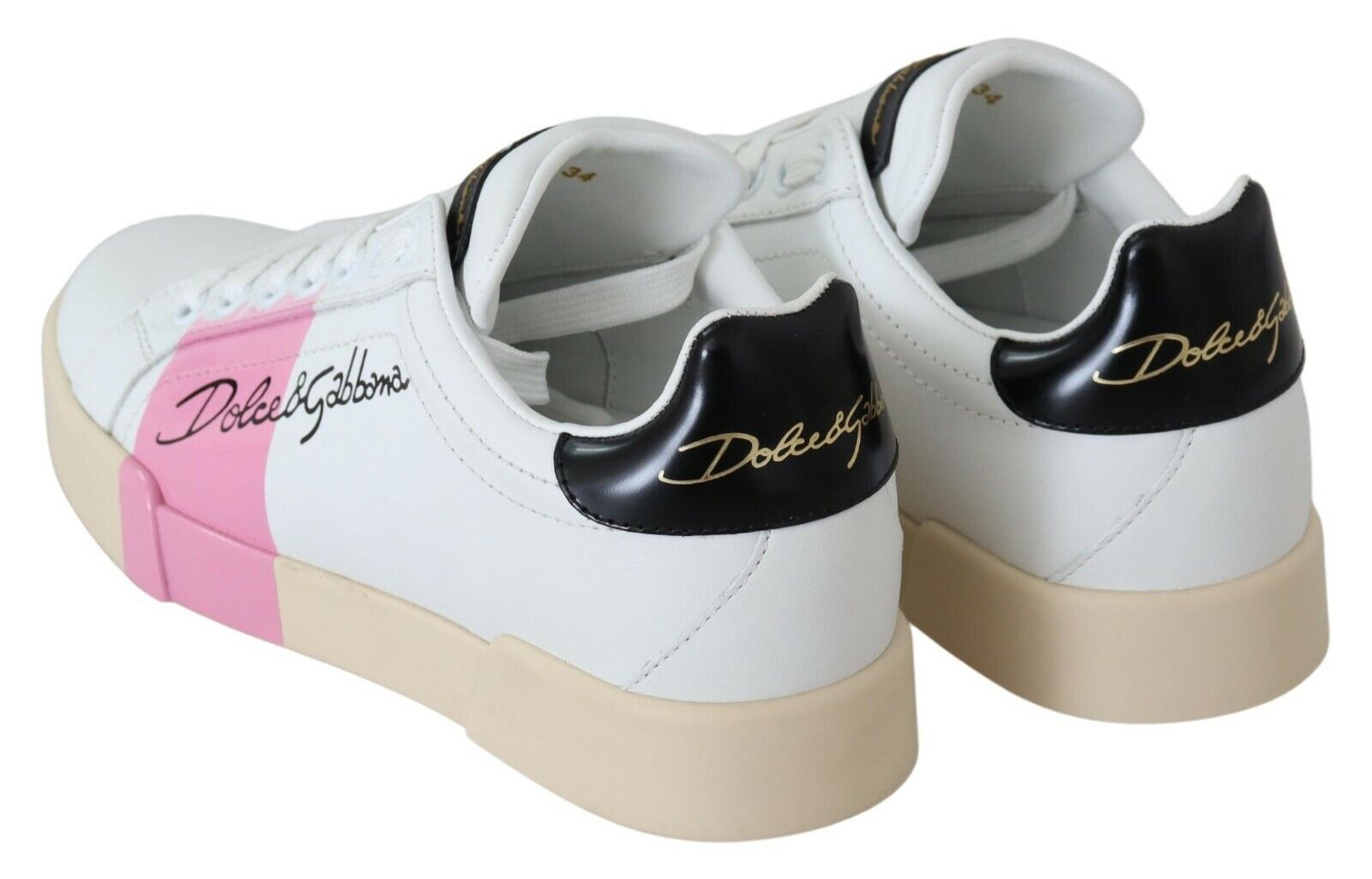 Step into luxury with these eye-catching Dolce & Gabbana sneakers. These gorgeous brand new sneakers come tagged and are crafted from 100% premium leather, ensuring both style and durability. Designed with a round toe, they feature a stylish contrasting heel counter, effortless lace fastening, and a subtle logo patch on the tongue. The sneakers are finished with standout stripe details, adding a touch of elegance to your casual ensemble. With a comfortable rubber sole, they’re perfect for all-day wear while adding a premium Italian touch to your steps.