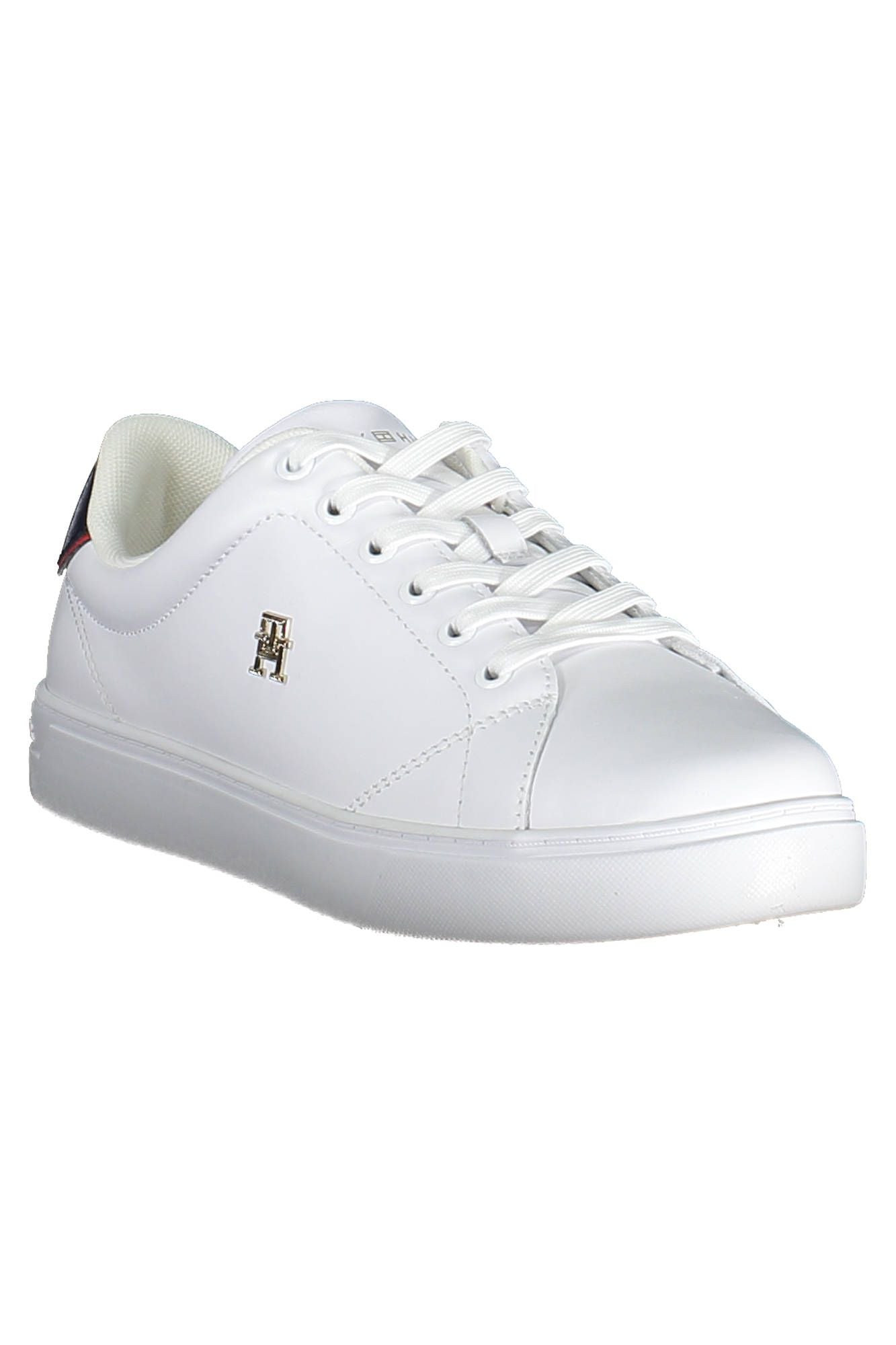 Elevate your athletic ensemble with these pristine white lace-up sneakers, featuring subtle contrasting details for a pop of sophistication. The iconic logo is tastefully displayed, adding a touch of designer flair to your sporty look. Whether you’re hitting the gym or just out for a casual stroll, these sneakers from Tommy Hilfiger offer both style and comfort.