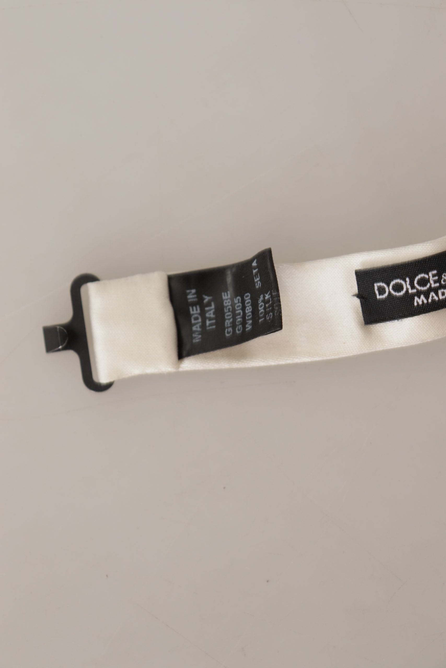 Step up your style game with the luxurious Dolce & Gabbana white silk bow tie. Perfect for any formal occasion, this stunning accessory will ensure you stand out with its exquisite craftsmanship and timeless design.