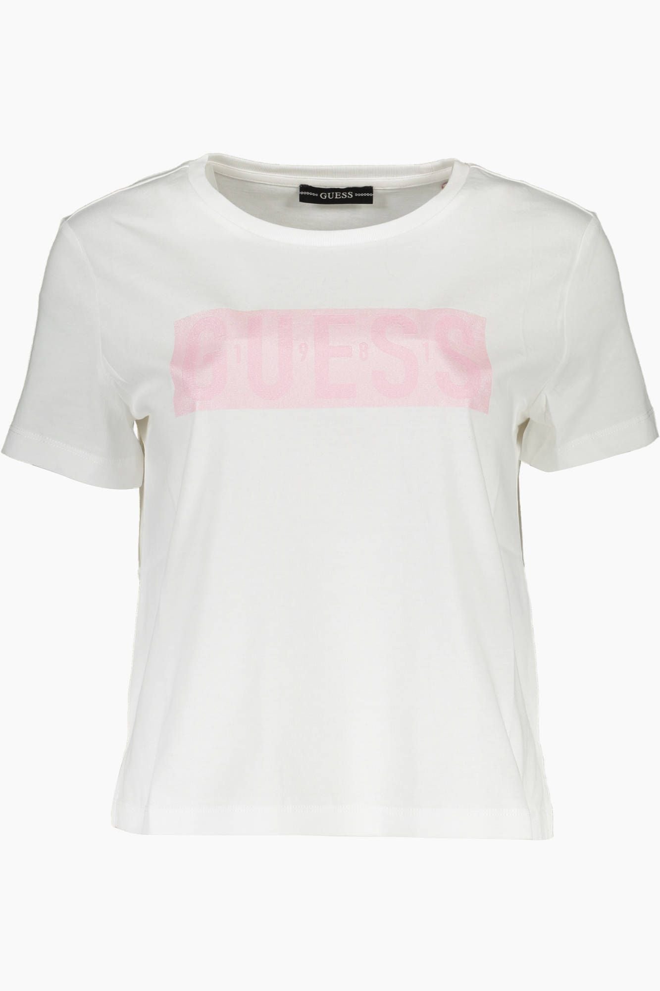 Step out in style with this crisp white t-shirt from Guess Jeans. Perfect for a casual day out or a laid-back evening, this tee features a bold logo print that makes a statement without saying a word. Comfort meets chic in this classic short sleeve and crew neck design, tailored to flatter and crafted for lasting quality.