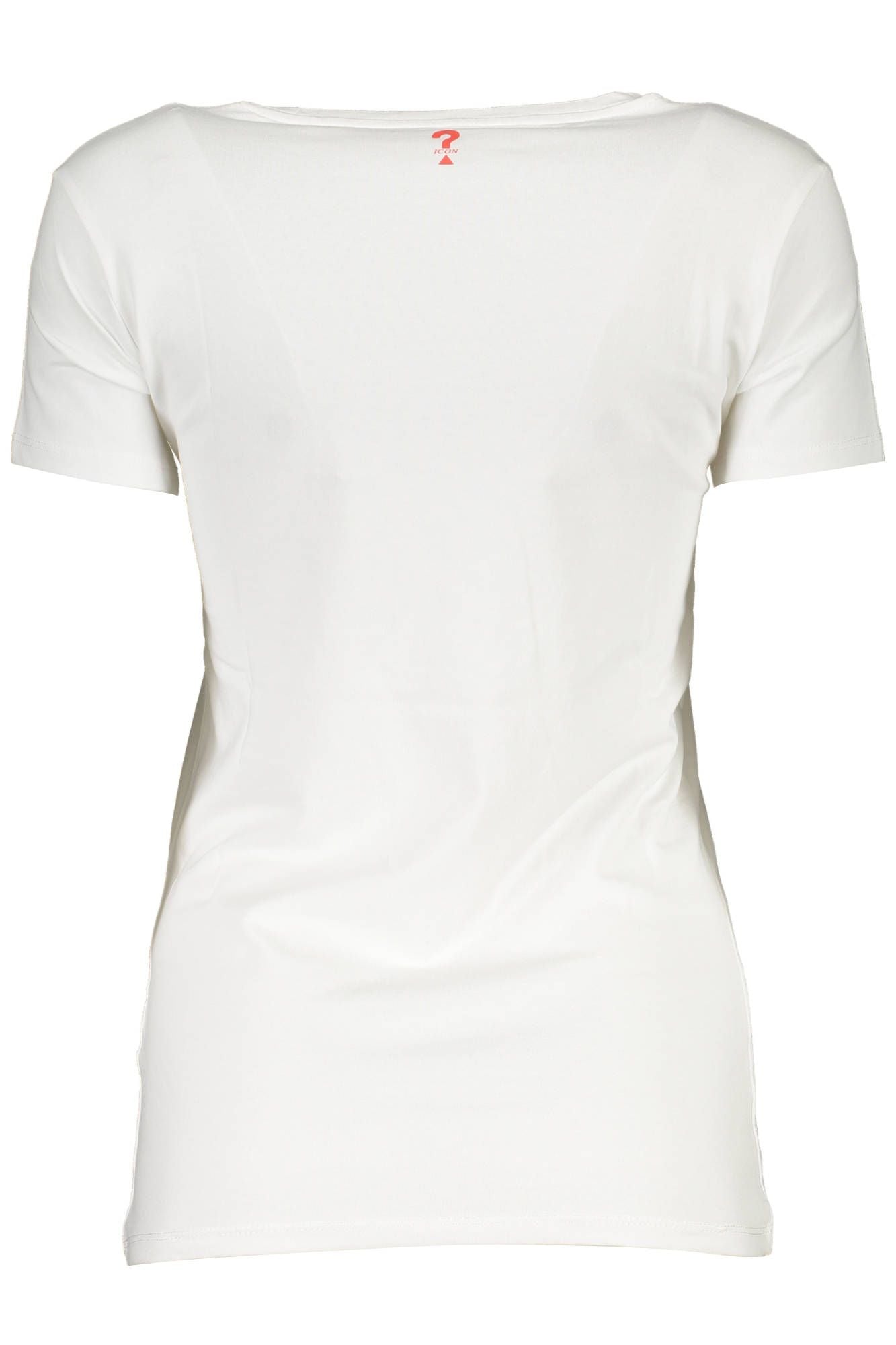 Embrace effortless style with this fresh and contemporary short-sleeved Guess Jeans t-shirt, boasting a wide neckline that flatters your collarbones. The chic print and applications add a touch of sophistication, while the iconic Guess Jeans logo brings a hint of luxury to your casual wear.