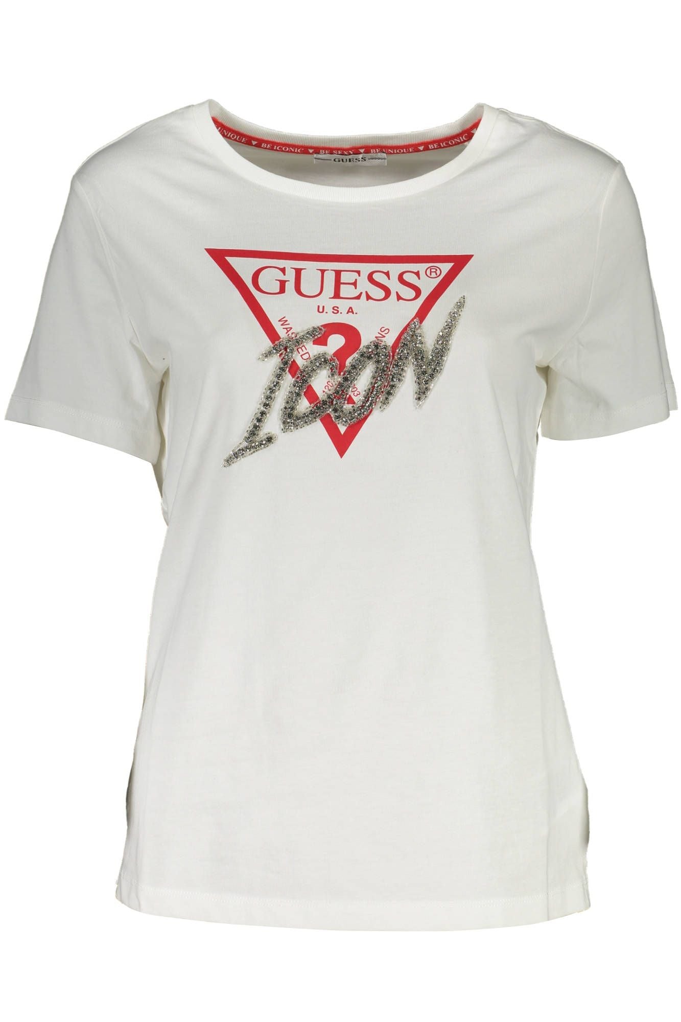 Strike a pose with the effortlessly stylish Guess Jeans short sleeve t-shirt. Radiate chic vibes with a stunning rhinestone-embellished logo, perfectly complementing the classic crew neck and eye-catching print. This tee is not just a fashion statement, it’s a testament to your exquisite taste.