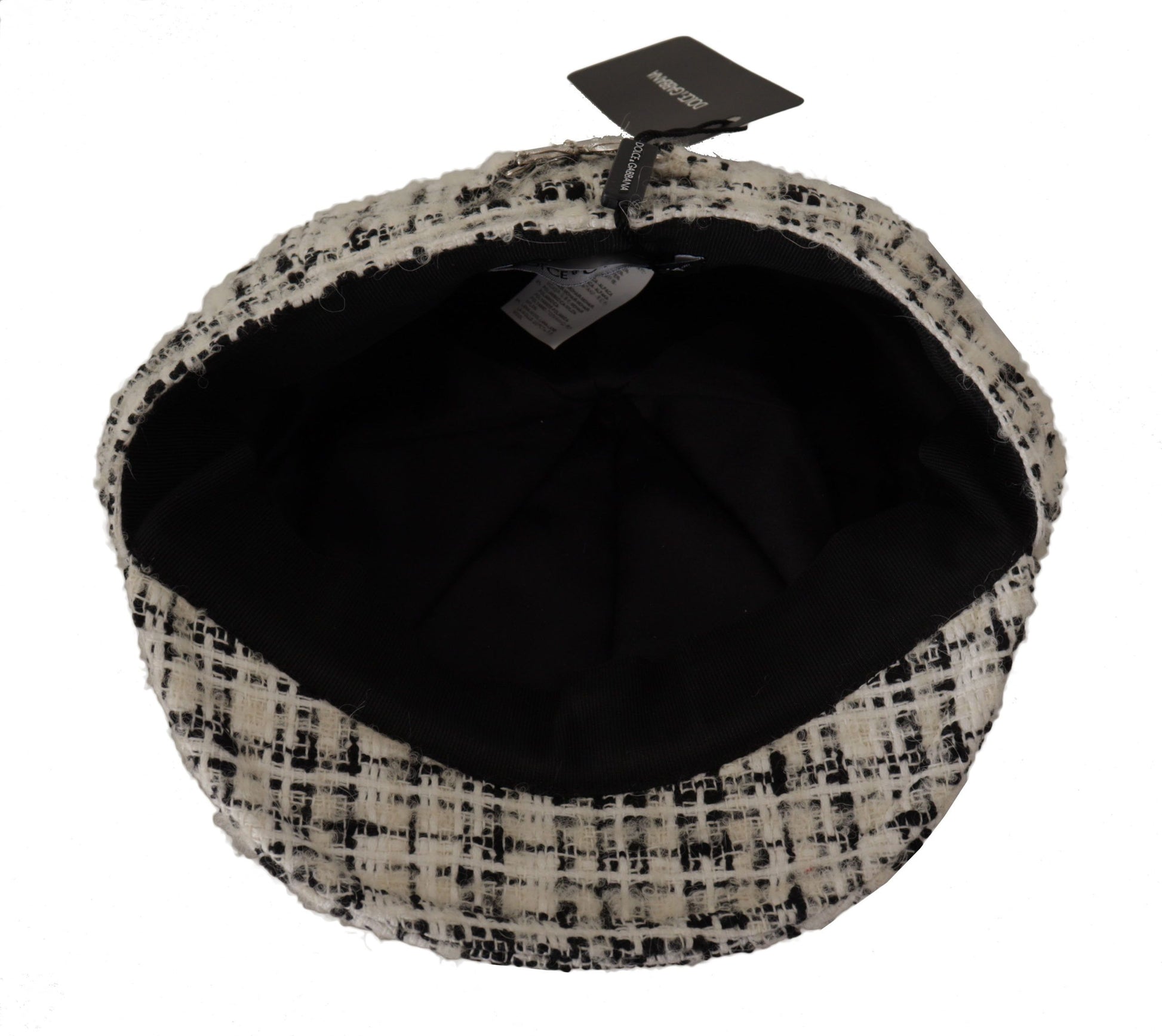 Indulge in the epitome of sophistication with our exquisite Dolce & Gabbana Newsboy Cap. Crafted in Italy, this white tweed hat boasts a curved narrow brim, accented with an elasticated band and adorned with the iconic DG logo plaque. It’s the perfect blend of elegance and style that will elevate any outfit.