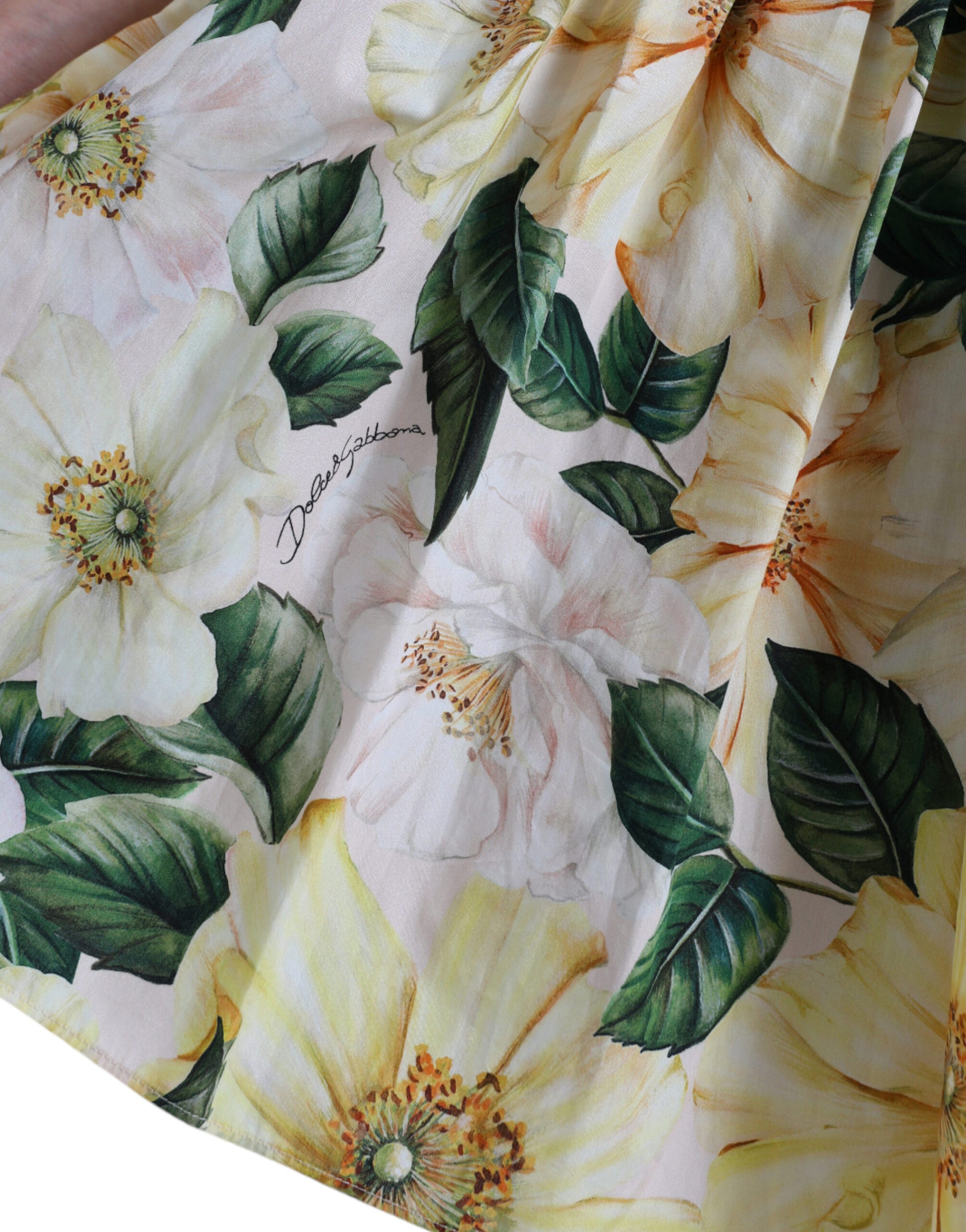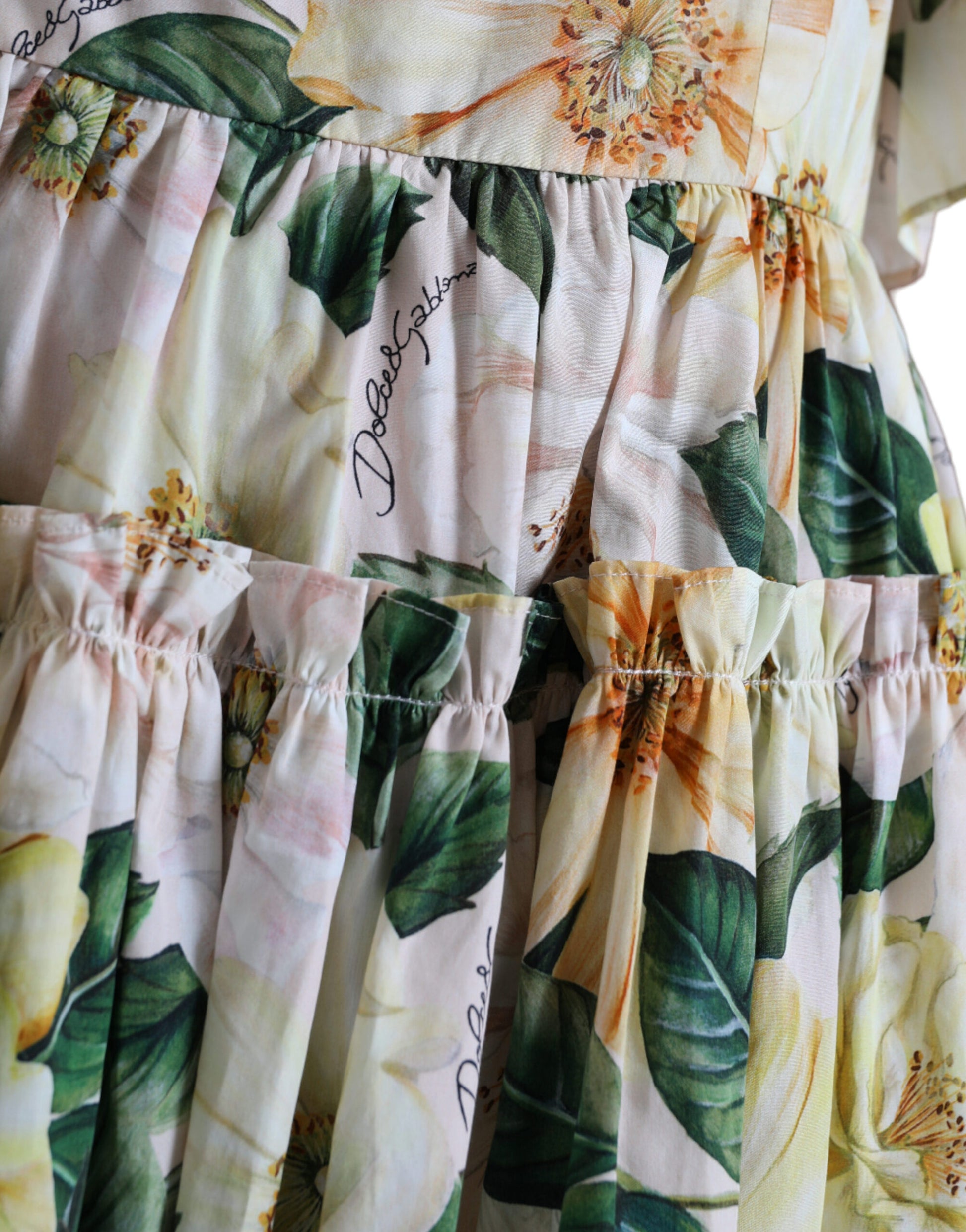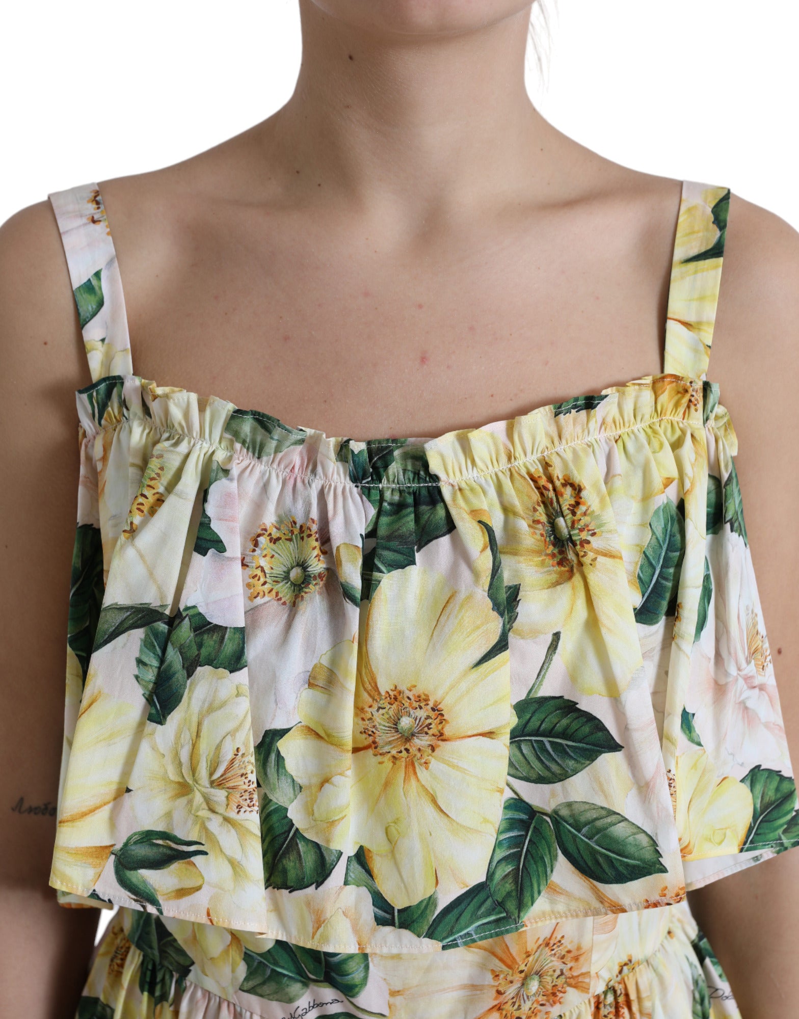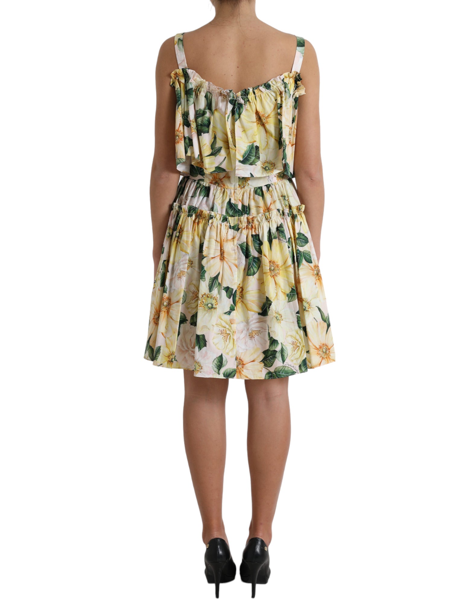 Gorgeous brand new with tags, 100% Authentic Dolce & Gabbana cotton floral print dress featuring square neck, cold-shoulder design, ruffled detailing and short sleeves.