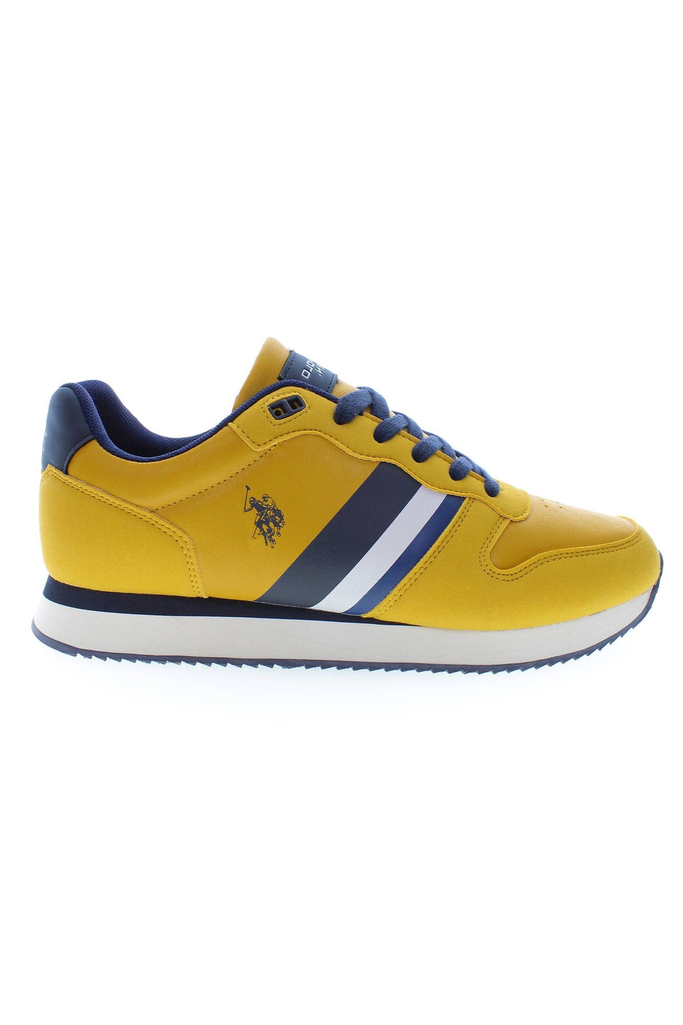 Step into comfort and style with the U.S. POLO ASSN. lace-up sneakers. These shoes boast a vibrant yellow hue complemented by contrasting details that make a sporty fashion statement. A prominent logo embellishment adds a touch of prestige to your stride. Ideal for both athletic activities and casual outings, these sneakers merge function and fashion effortlessly.