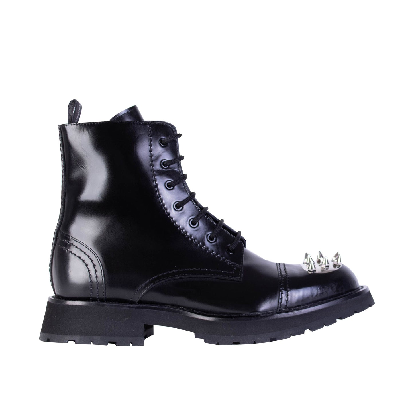 Step into bold style with these striking Studded Combat Boots, a guaranteed head-turner with a blend of luxury and rebellious charm. Perfect for fashion aficionados, these boots are the epitome of high-end craftsmanship, proudly presented by Alexander McQueen, a brand synonymous with cutting-edge fashion and impeccable quality.