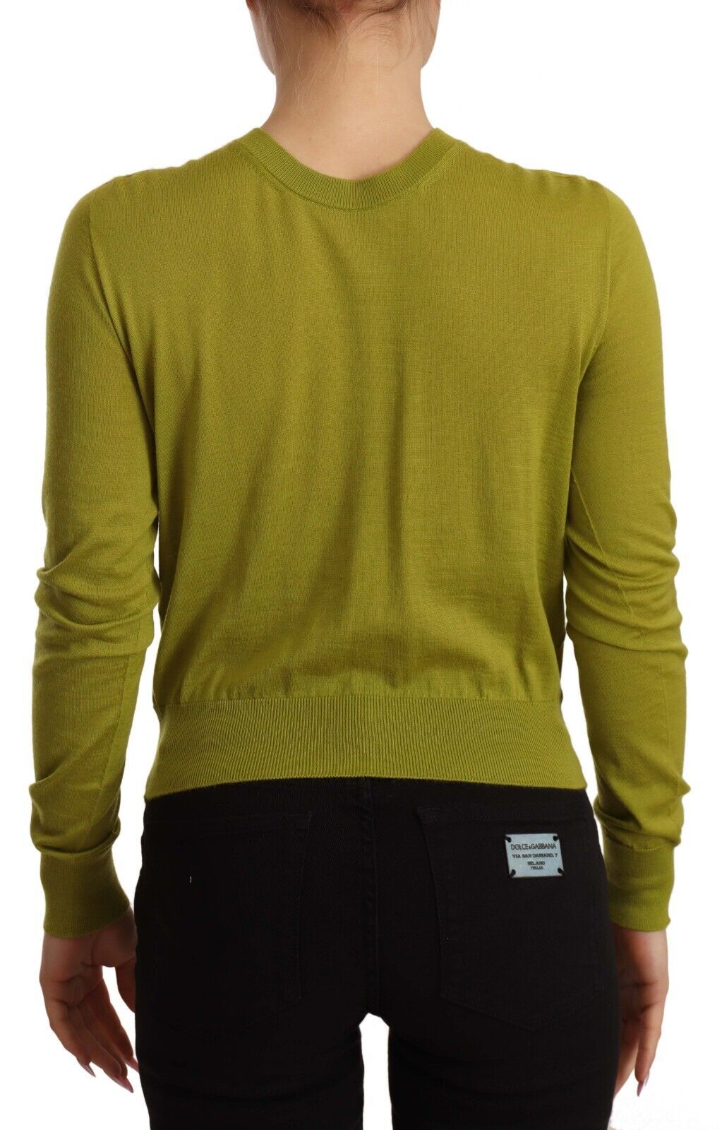 Indulge in the essence of luxury and warmth with this stunning Apple Green Cardigan from Dolce & Gabbana. Crafted from pure 100% cashmere, this piece not only provides unparalleled comfort but also exudes a vibrant charm with its gorgeous apple green color. The cardigan is adorned with decorative buttons, adding a touch of Italian elegance to your wardrobe. Perfect for those who cherish sophisticated style along with cozy materials.
