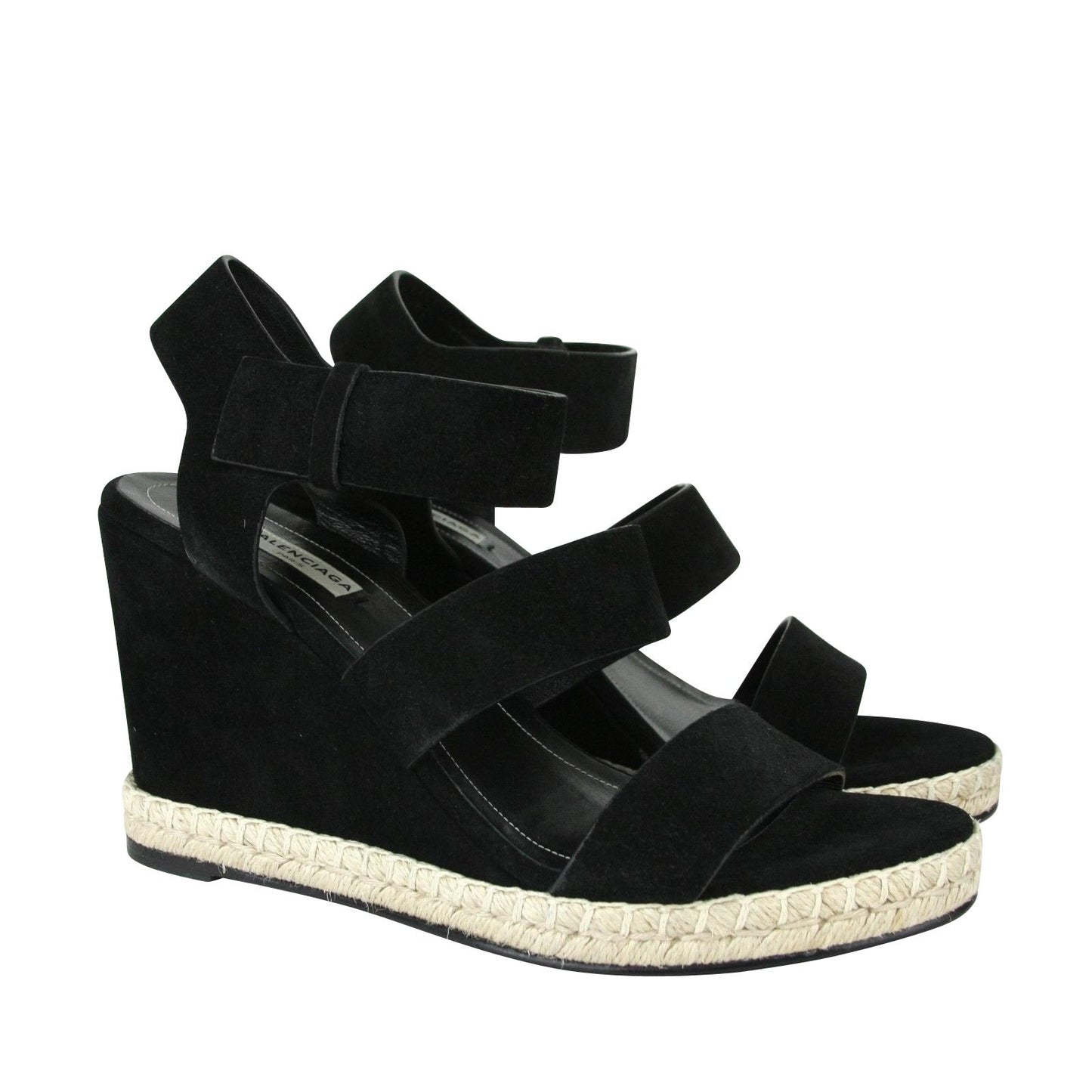 Balenciaga Women's Wedge Platform Black Suede Sandals