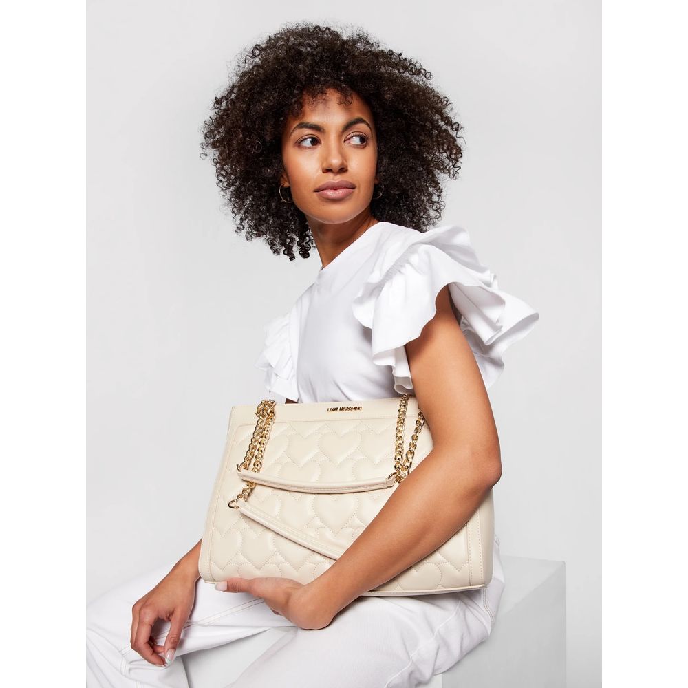 Indulge in the epitome of elegance with this exquisite faux leather shopper, adorned with a charming heart motif that captures the essence of romance. Accented by gleaming gold hardware and a prominent logo display, this accessory is as functional as it is fashionable, offering ample space for your essentials within its dimensions of 35x24x14 cms. Whether you’re running errands or enjoying a day out, this beige shoulder bag is a testament to style without sacrificing practicality.