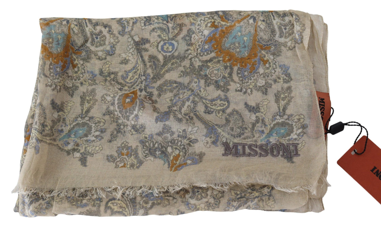 Indulge in the luxury of Missoni with this exquisite cashmere scarf, boasting a sophisticated baroque pattern and the recognizable brand logo embroidery. Designed for a unisex wardrobe, this scarf adds a touch of elegance to any outfit while keeping you warm. With its generous dimensions and playful fringes, it’s the perfect accessory for those who appreciate fine Italian craftsmanship.