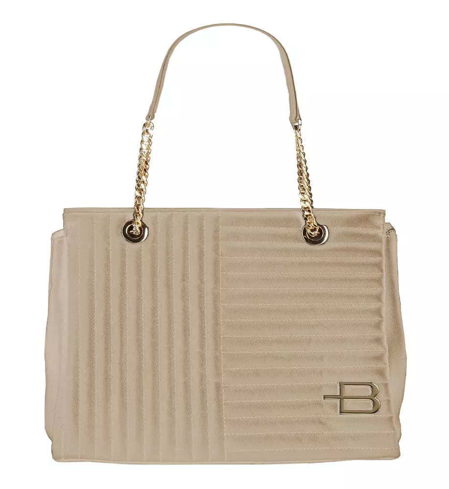 Chic Beige Calfskin Crossbody with Chain Detail