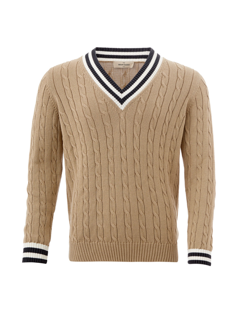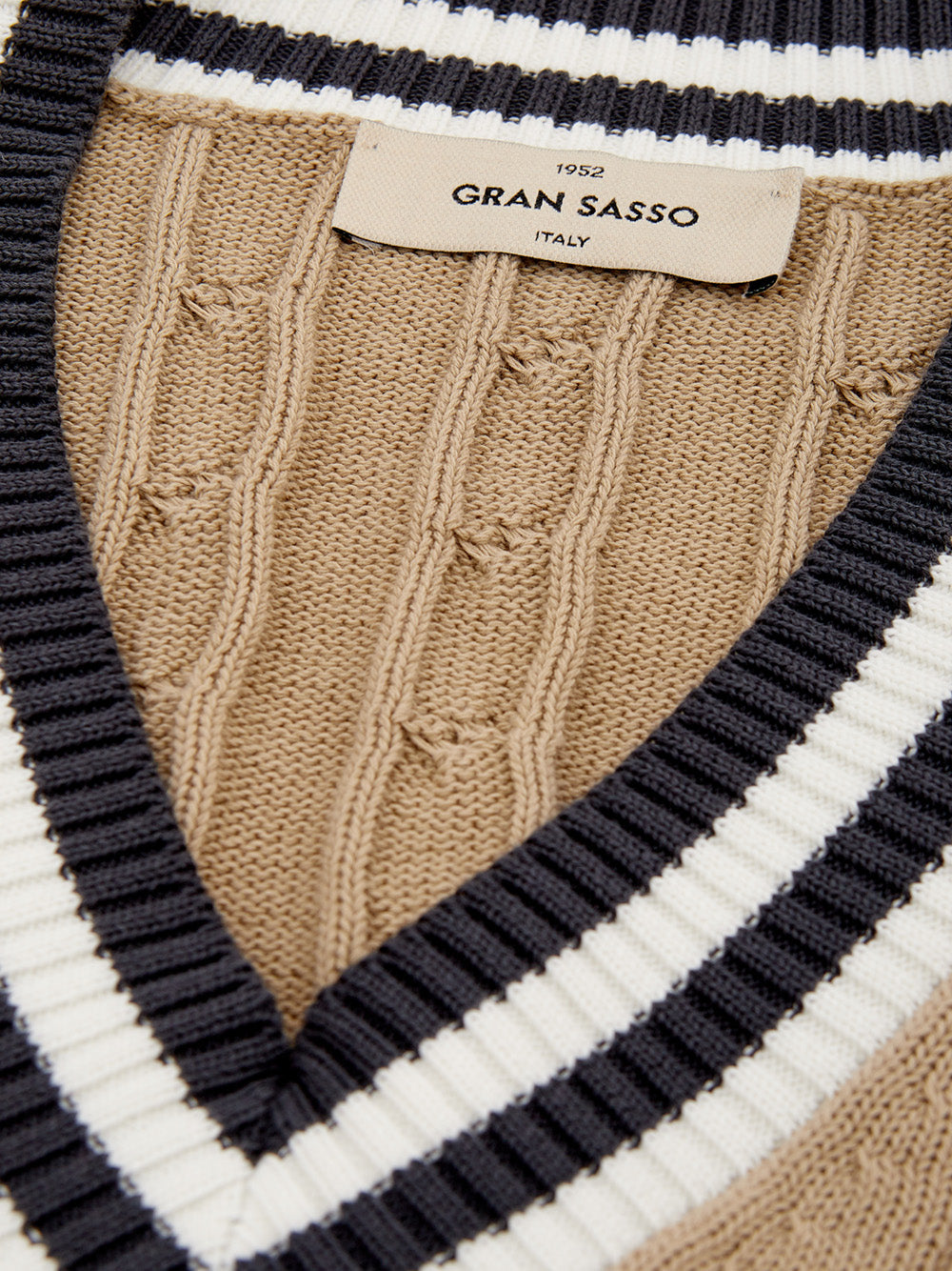 Step into timeless style with the gorgeous 100% cotton cable-knit sweater from Gran Sasso. This V-neck piece exudes a blend of classic charm and casual elegance, perfect for elevating your wardrobe. Crafted with care in Italy, it features a contrasting hem and regular fit that offers both comfort and sophistication.