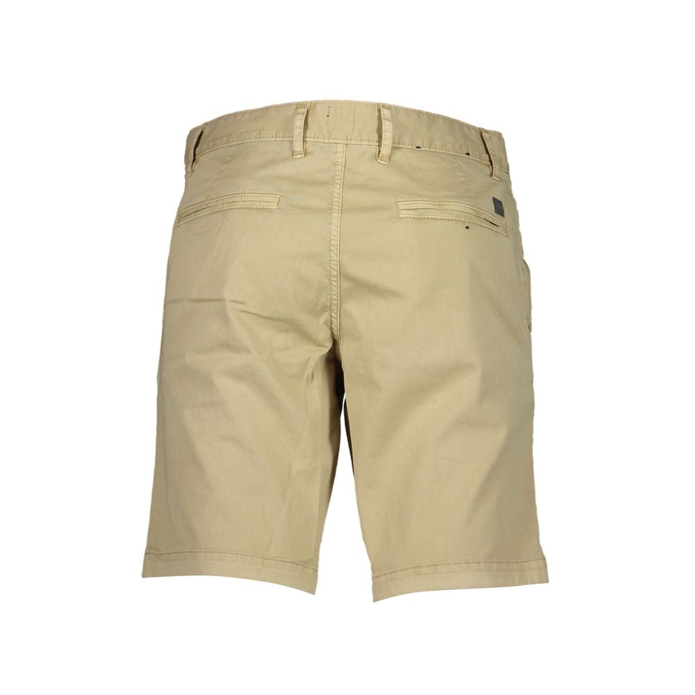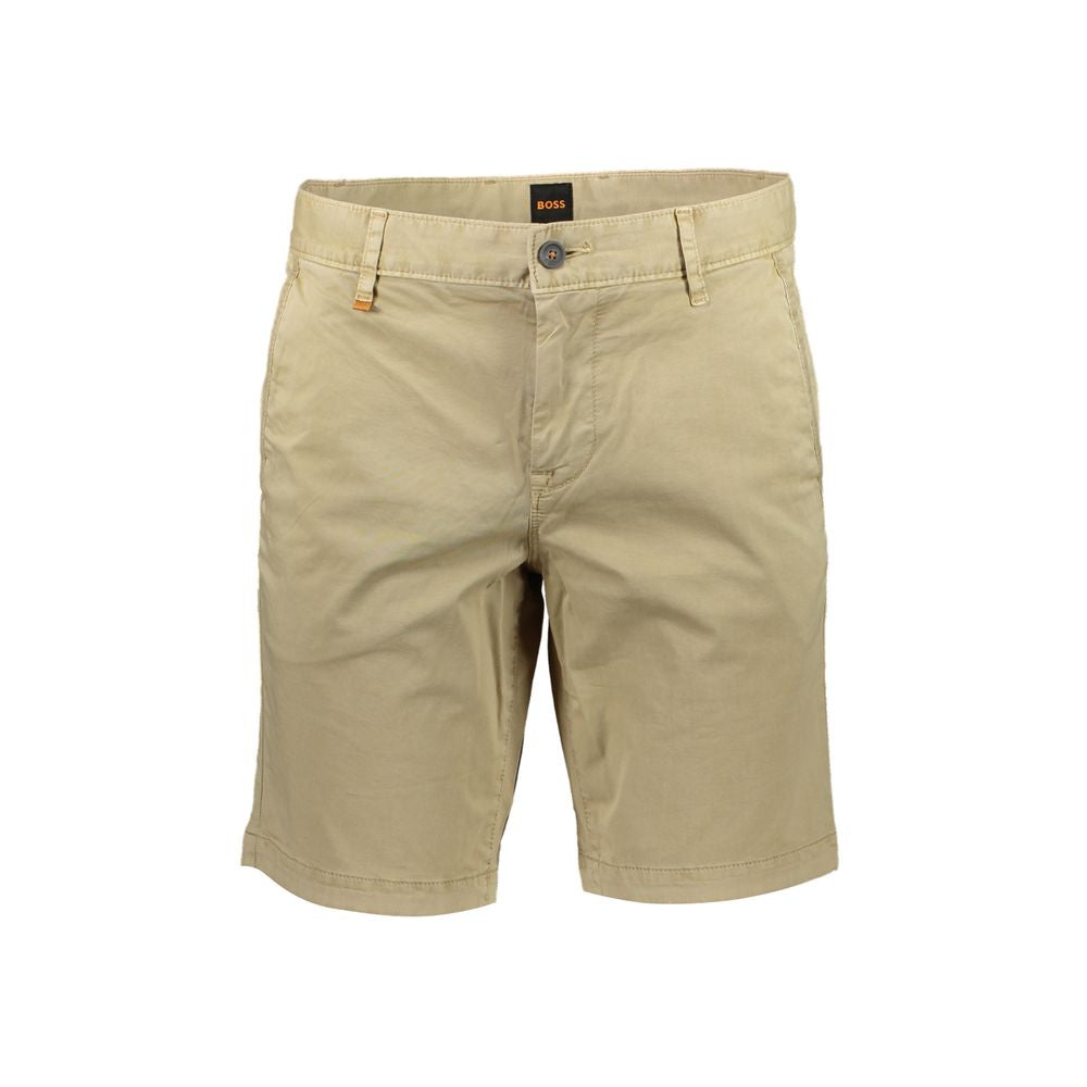 Refine your casual wardrobe with the epitome of comfort and style. These beige Bermuda shorts by Hugo Boss present a slim fit silhouette that exudes modern sophistication. Tailored with responsible cotton, they feature the classic five-pocket design, ensuring functionality without sacrificing style. The secure button and zip closure complemented by the subtle brand logo denote high quality and attention to detail. Perfect for a smart weekend ensemble or a relaxed getaway outfit.
