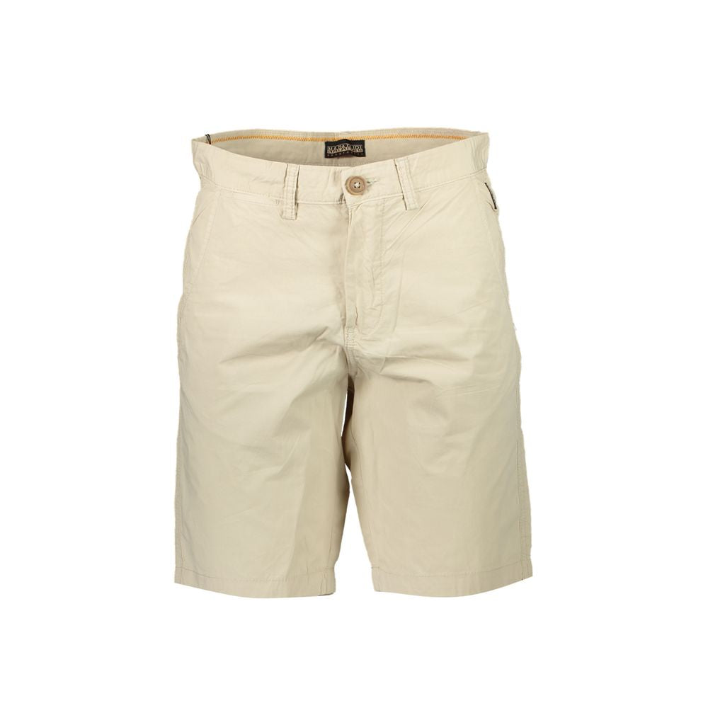 Embrace the warmth of summer in style with our Chic Beige Bermuda Shorts. Perfect for those sun-drenched days and balmy evenings, these shorts feature a classic four-pocket design, secured with a button and zip closure. Adorned with subtle embroidery and the iconic Napapijri logo, they offer a blend of casual sophistication and comfort, thanks to their 100% cotton construction.