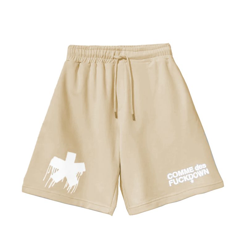 Elevate your casual wear with these beige stretch cotton shorts, perfect for those seeking both comfort and style. Featuring a convenient drawstring, side pockets for your essentials, and a distinct front logo print that adds an edge to your outfit. A back pocket enhances functionality, making these shorts a versatile addition to your wardrobe.