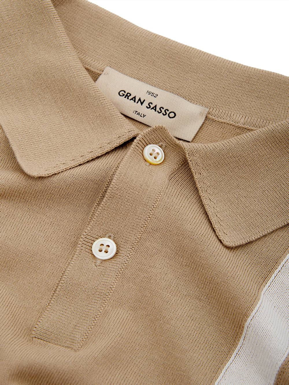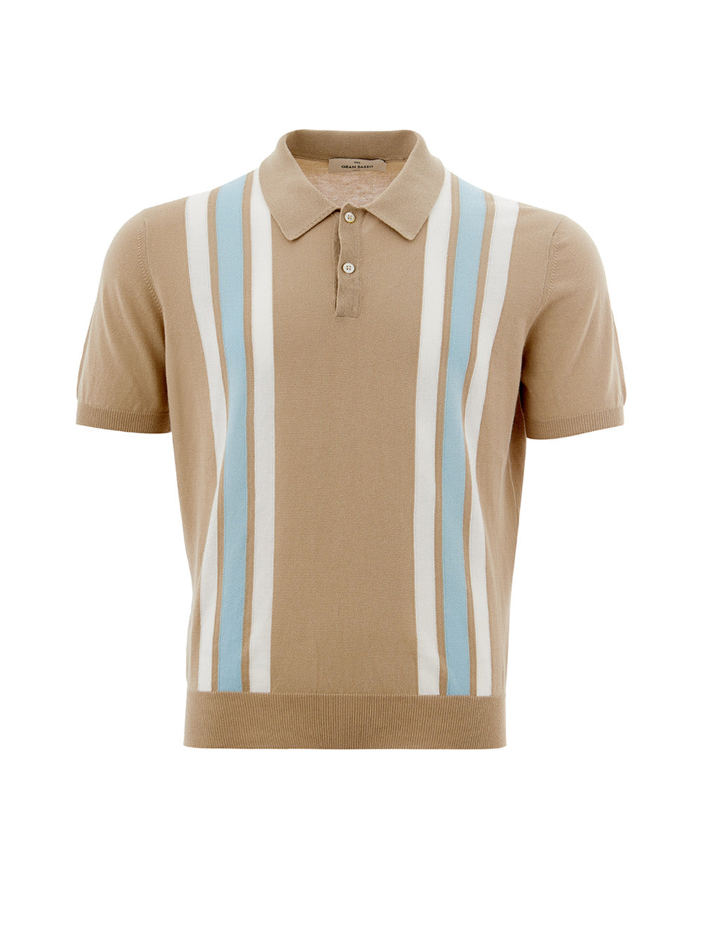 Introducing the epitome of sophistication and comfort wrapped in one – a magnificent beige cotton polo shirt by Gran Sasso, fresh off the Italian runway. Tailored to perfection with a regular fit, this polo offers a smart look with its contrasting stripes and a classic french collar. The subtle knitwear effect imbues a touch of elegance while ensuring a versatile garment that easily transitions from a casual day out to an upscale evening affair.