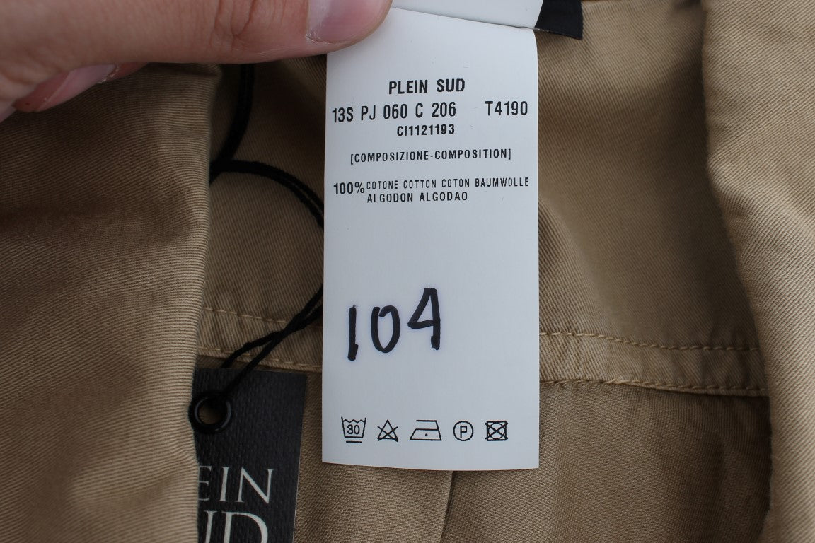 Infuse effortless elegance into your wardrobe with this gorgeous beige, sleeveless blouse from PLEIN SUD. Perfect for those seeking a blend of sophisticated style and comfort, this 100% authentic shirt features a sleek button front and subtle logo details. Its pure cotton composition ensures breathable wear, making it an ideal choice for any occasion.