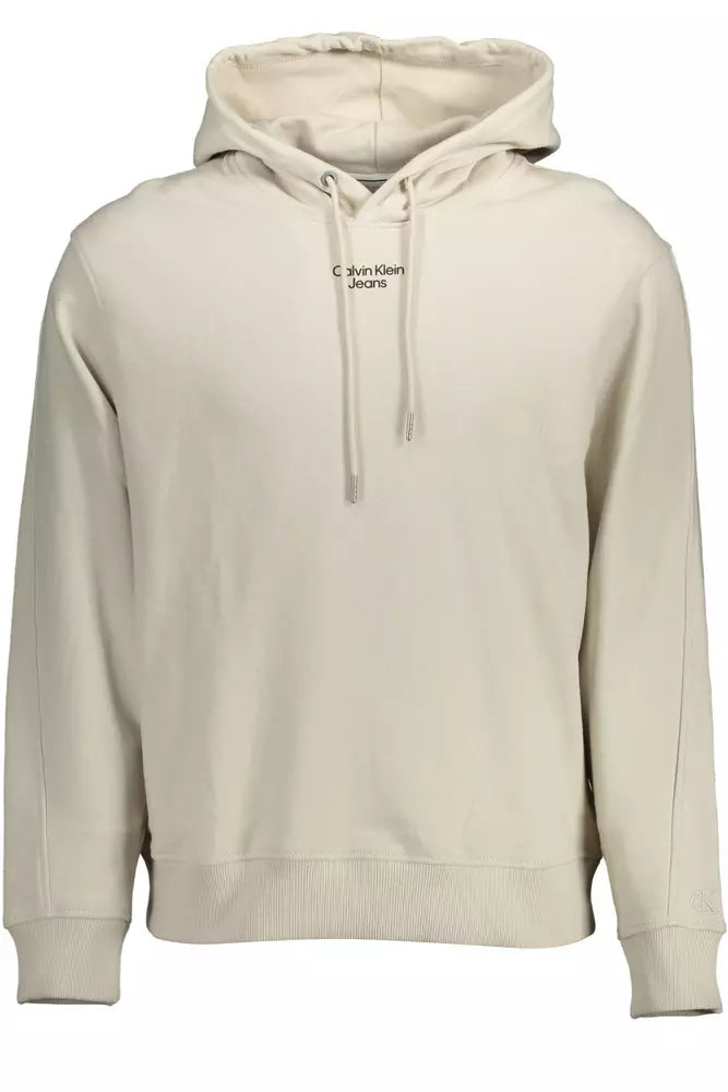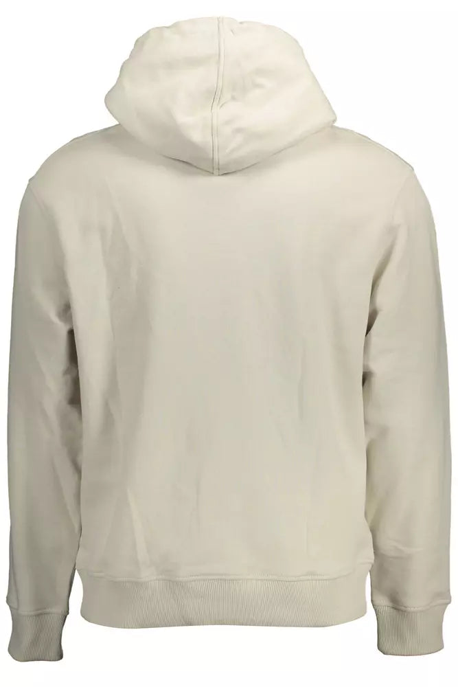 Beige Cotton Hooded Sweatshirt with Logo Print