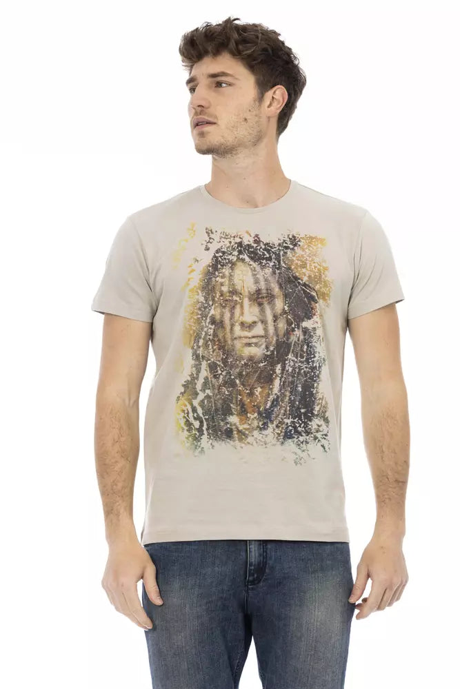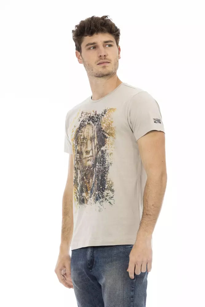 Elevate your casual wardrobe with this impeccable Trussardi Action T-shirt. Featuring a round neck design and a striking front print, this short-sleeve top blends comfort and style seamlessly. Perfect for a relaxed yet polished look.