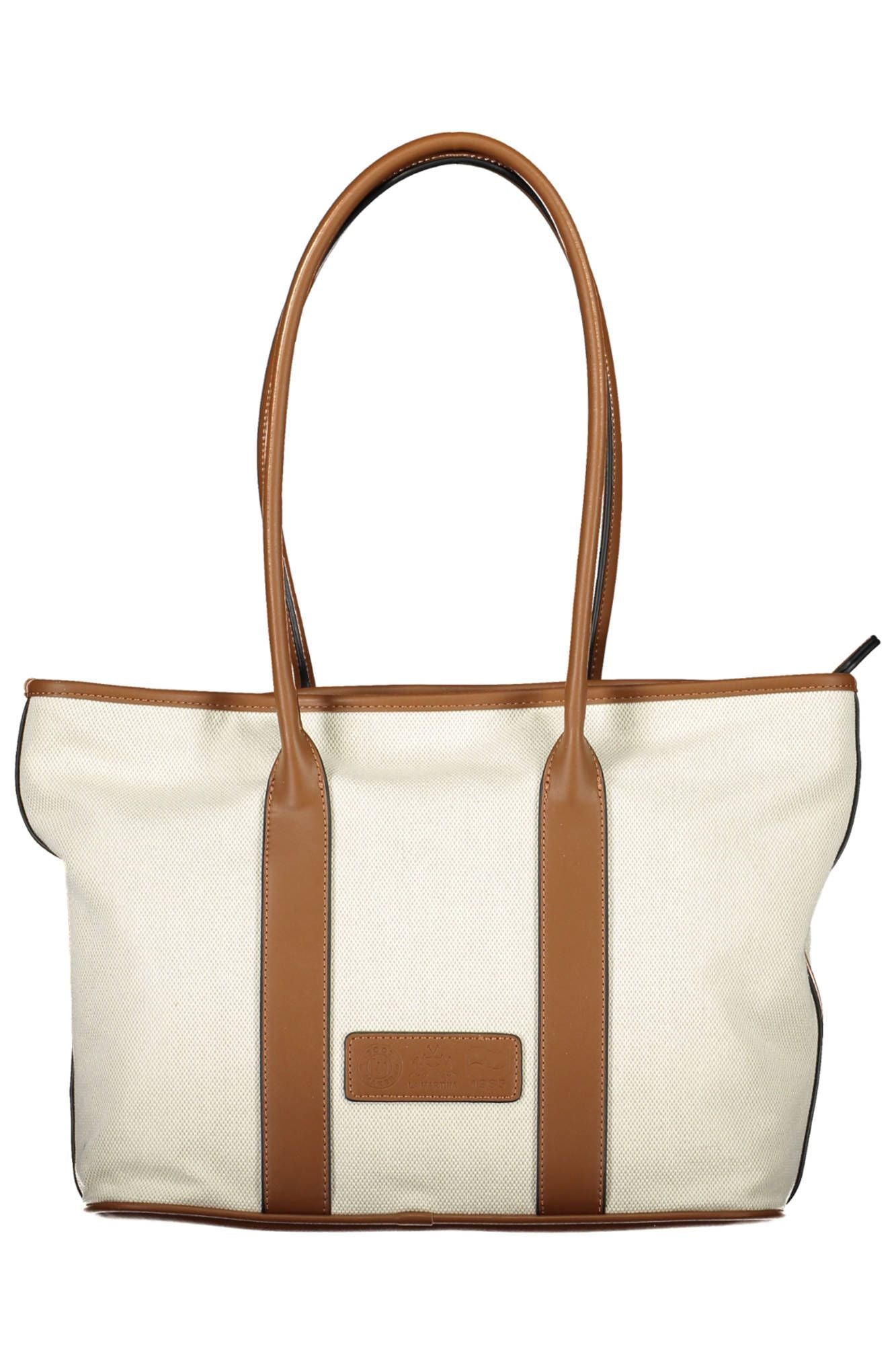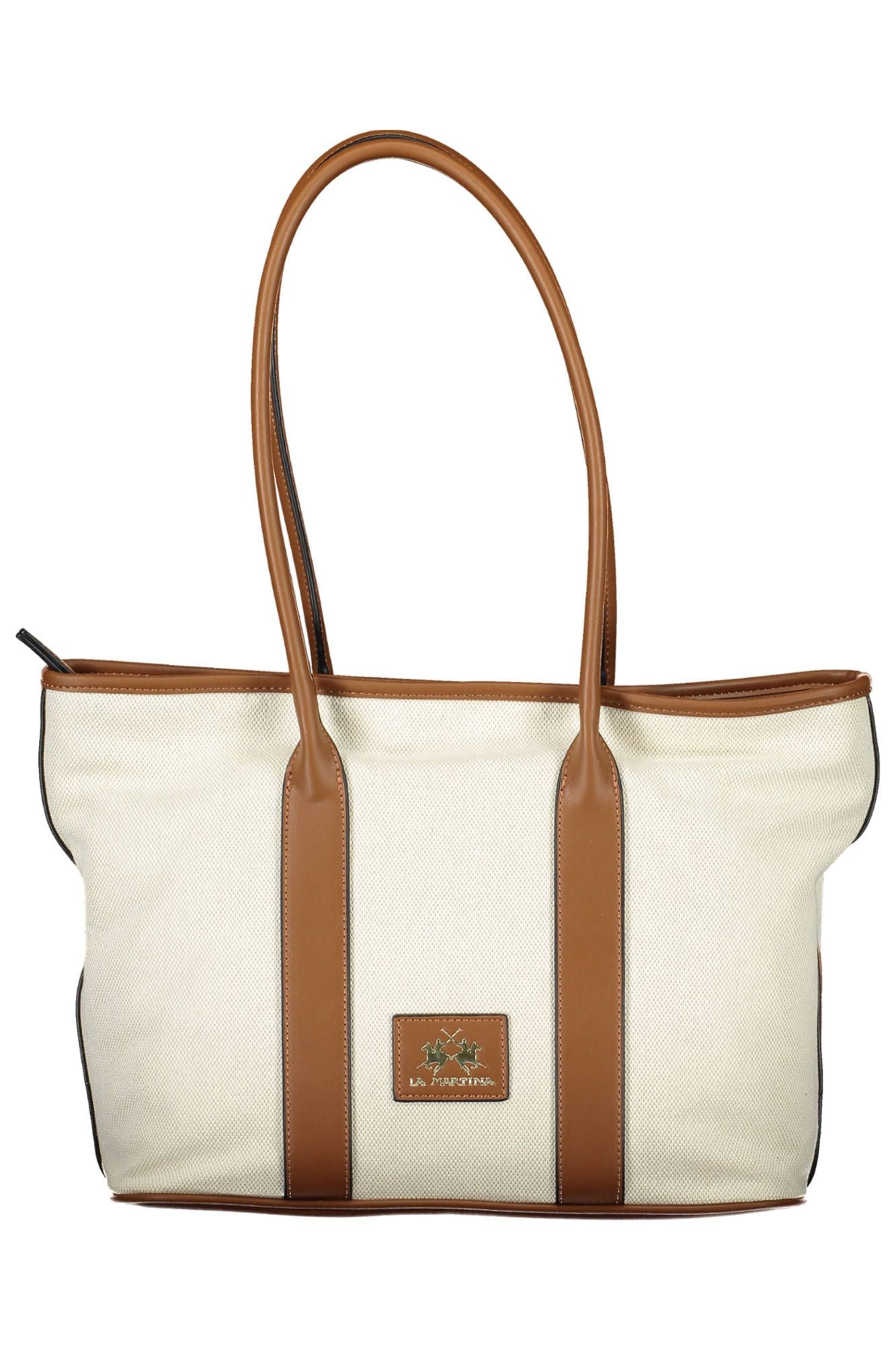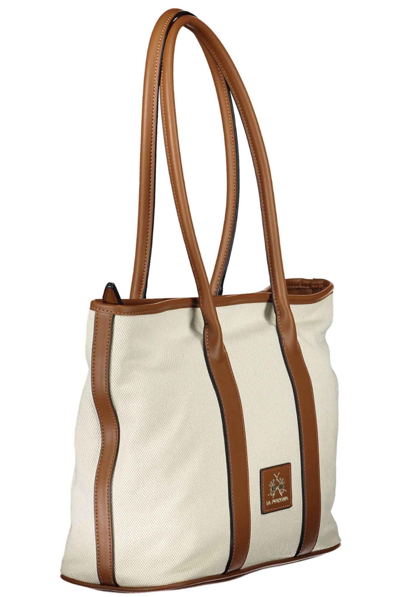 Chic Beige Cotton Shoulder Bag with Contrasting Details