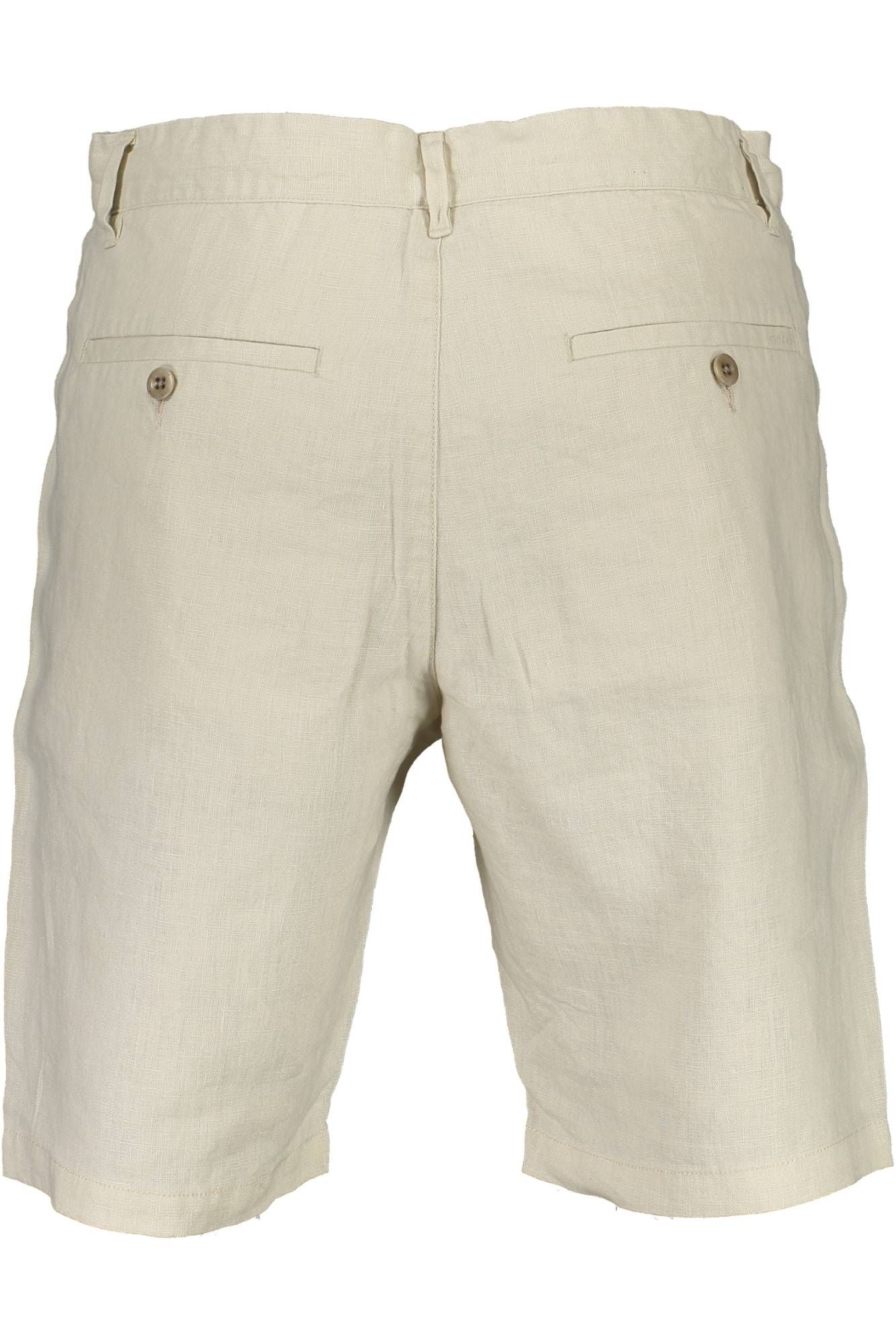Chic Beige Linen Bermuda Shorts with Logo Detail
