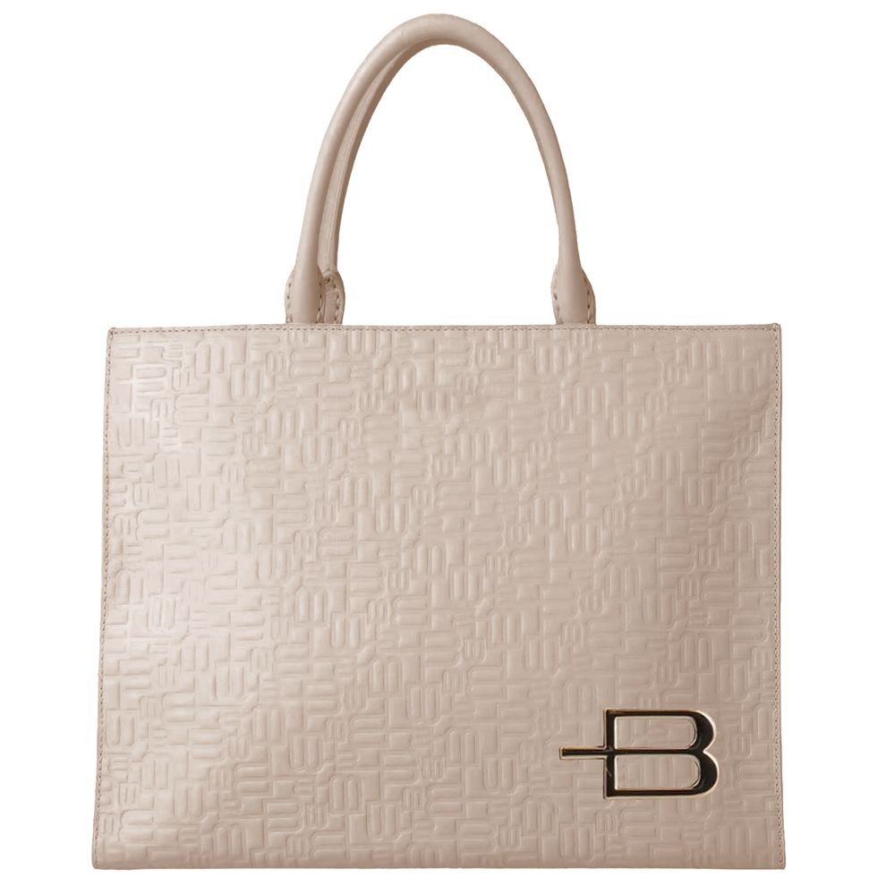 Discover elegant sophistication with this beige calfskin handbag, adorned with a distinctive logo motif print for an added touch of luxury. The striking metallic logo embellishment on the front enhances its charm. Thoughtfully designed with internal compartments to keep your essentials organized, this accessory is not only stylish but functional. Perfect for those who appreciate fine craftsmanship and timeless style.