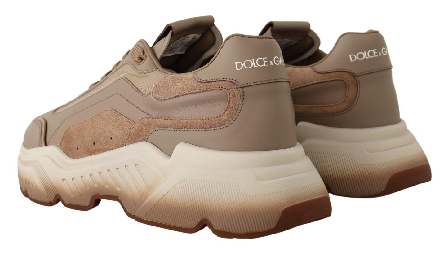 Step into luxury with these exquisite beige Daymaster sneakers from Dolce & Gabbana. Designed with the modern man in mind, these sneakers blend elegance with casual style, ensuring that each step you take is a statement of fashion. Crafted with high craftsmanship standards in Italy, these sneakers feature a seamless mix of materials for long-lasting wear and superior comfort. Accented with the iconic Dolce & Gabbana logo details, they reflect the brand’s dedication to quality and style.