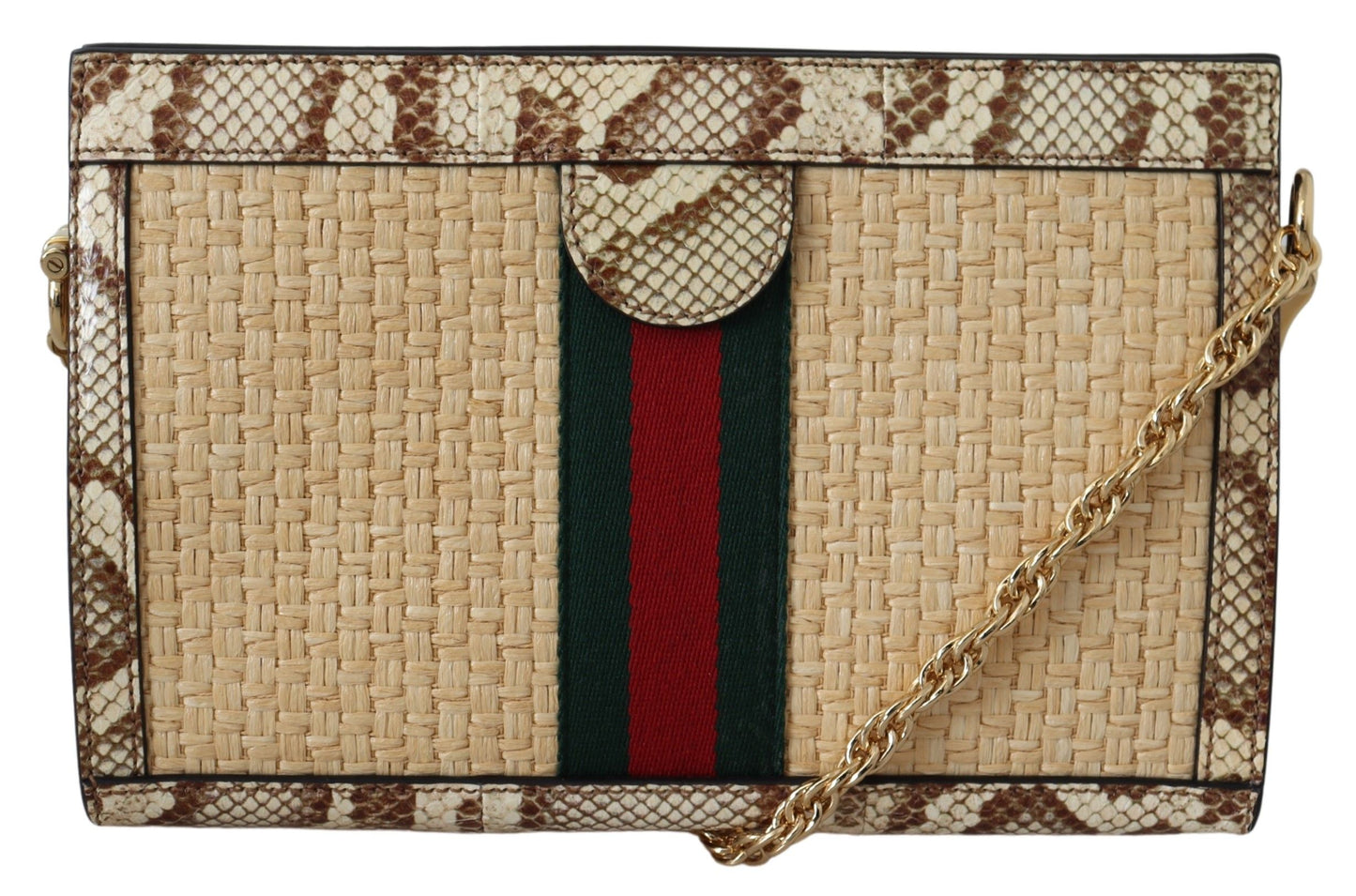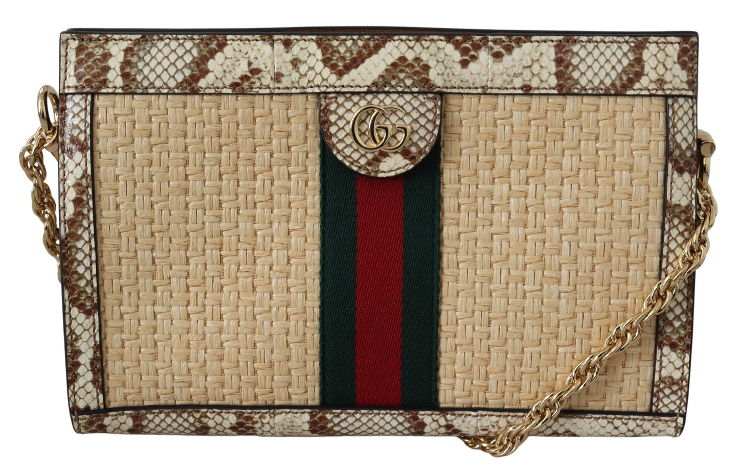 Indulge in the epitome of luxury with our stunning Gucci Shoulder Bag. Brand new with tags, this exquisite piece comes complete with a dustbag. Fashioned from premium snake leather and viscose, the bag spells sophistication with its elegant beige tone. It features a sleek magnetic closure and is adorned with gold-toned metal hardware, including a chic chain strap giving you the option to wear it as a shoulder bag or crossbody. The bag is smartly designed with two compartments to keep your essentials organized.