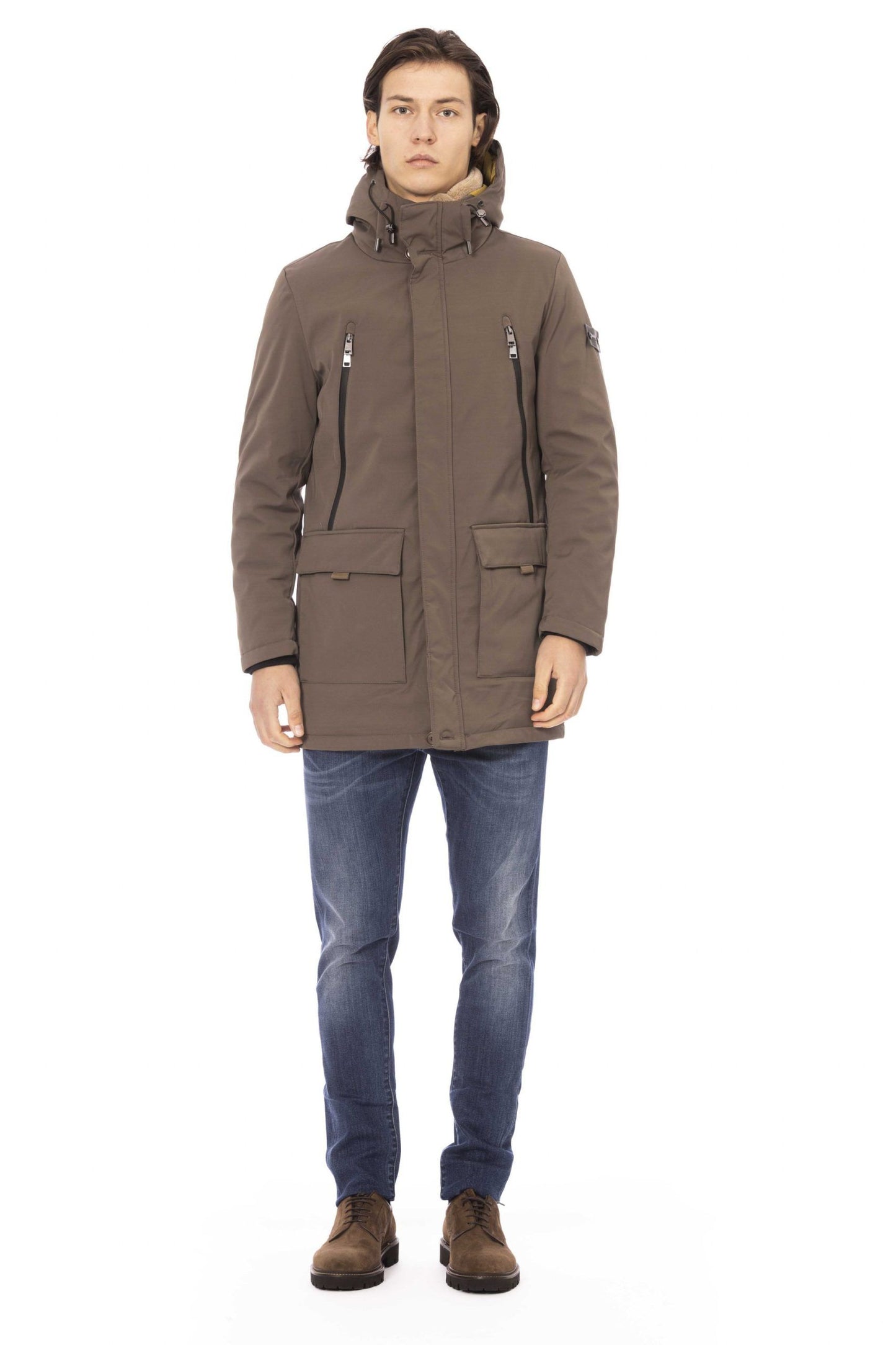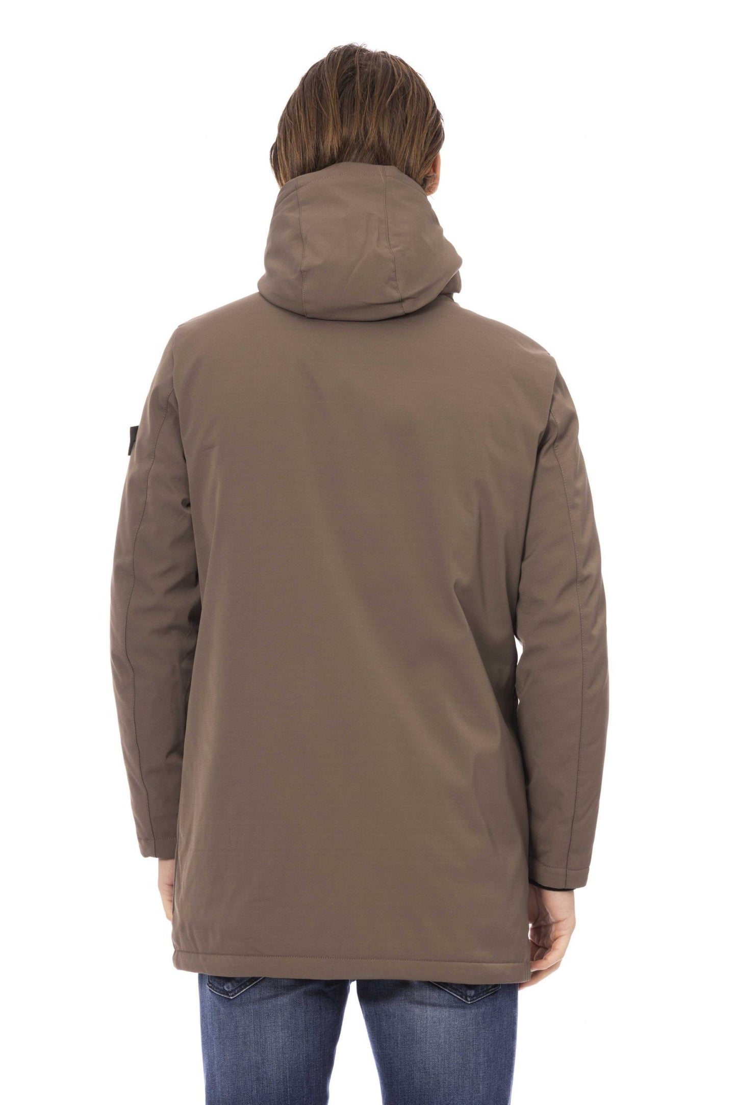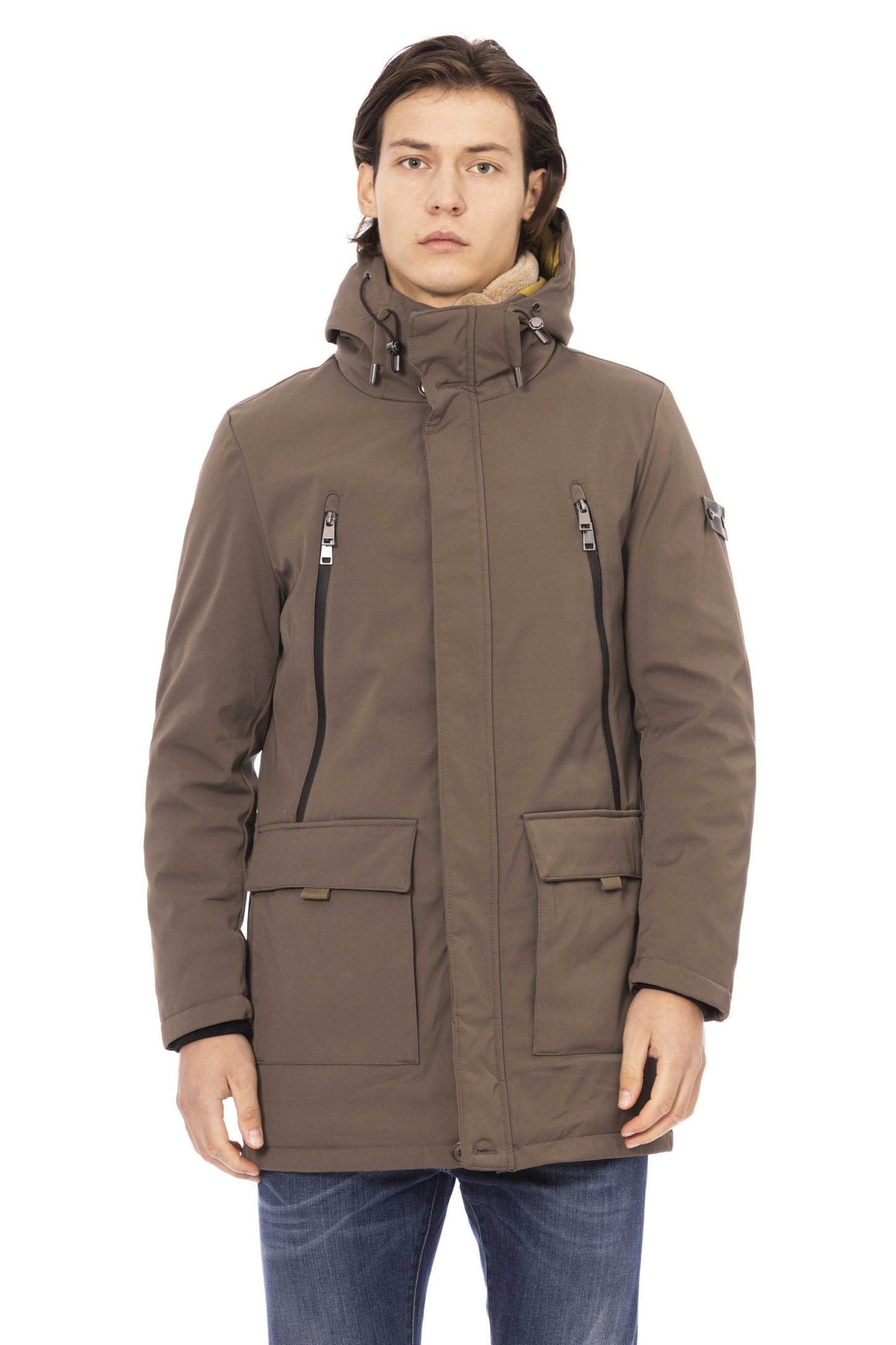 Discover the epitome of craftsmanship with this exquisite beige long jacket from Baldinini Trend. Perfectly blending style with practicality, it features two side pockets and an additional two with secure zip closures to keep your essentials safe. The adjustable hood offers versatile styling options and added protection from the elements. Elegantly accented with a Baldinini monogram in polished metal, it boasts a front zip closure complete with a custom zip puller for that signature touch of luxury.