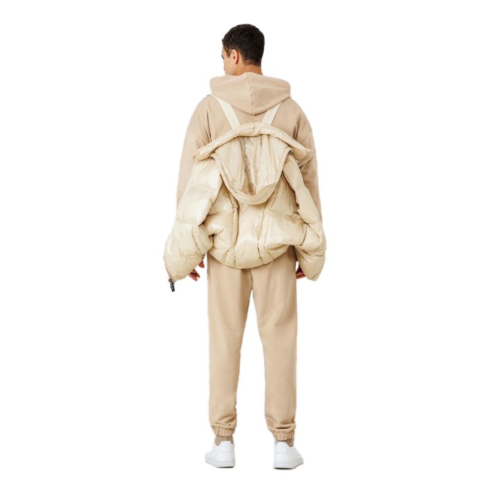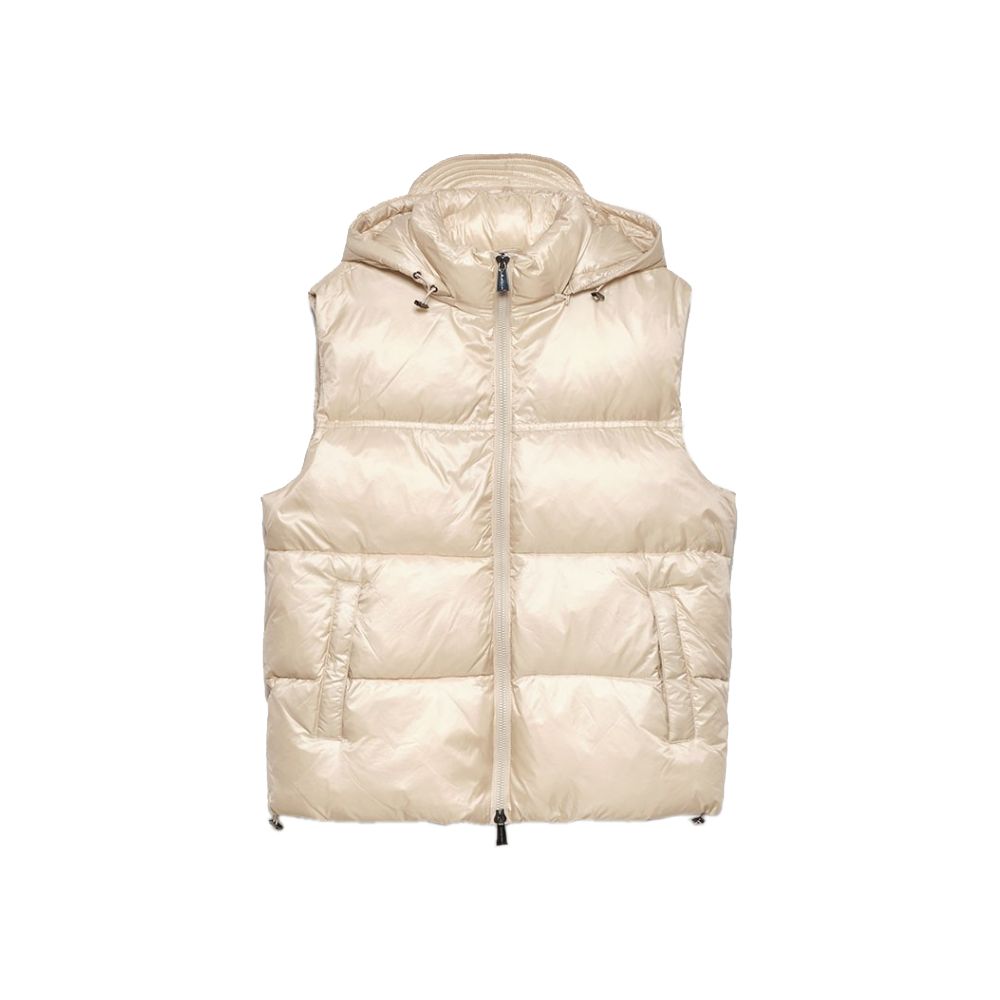 Discover the epitome of comfort and style with this versatile sleeveless down jacket. Crafted from high-quality technical fabric, it features a sleek zip closure, convenient side pockets, and a protective hood with an adjustable drawstring and visor. The internal elasticated shoulder straps offer added functionality, allowing for a snug fit or easy carry when not worn. Perfect for transitional weather, this beige jacket will complement your wardrobe with its functional elegance.