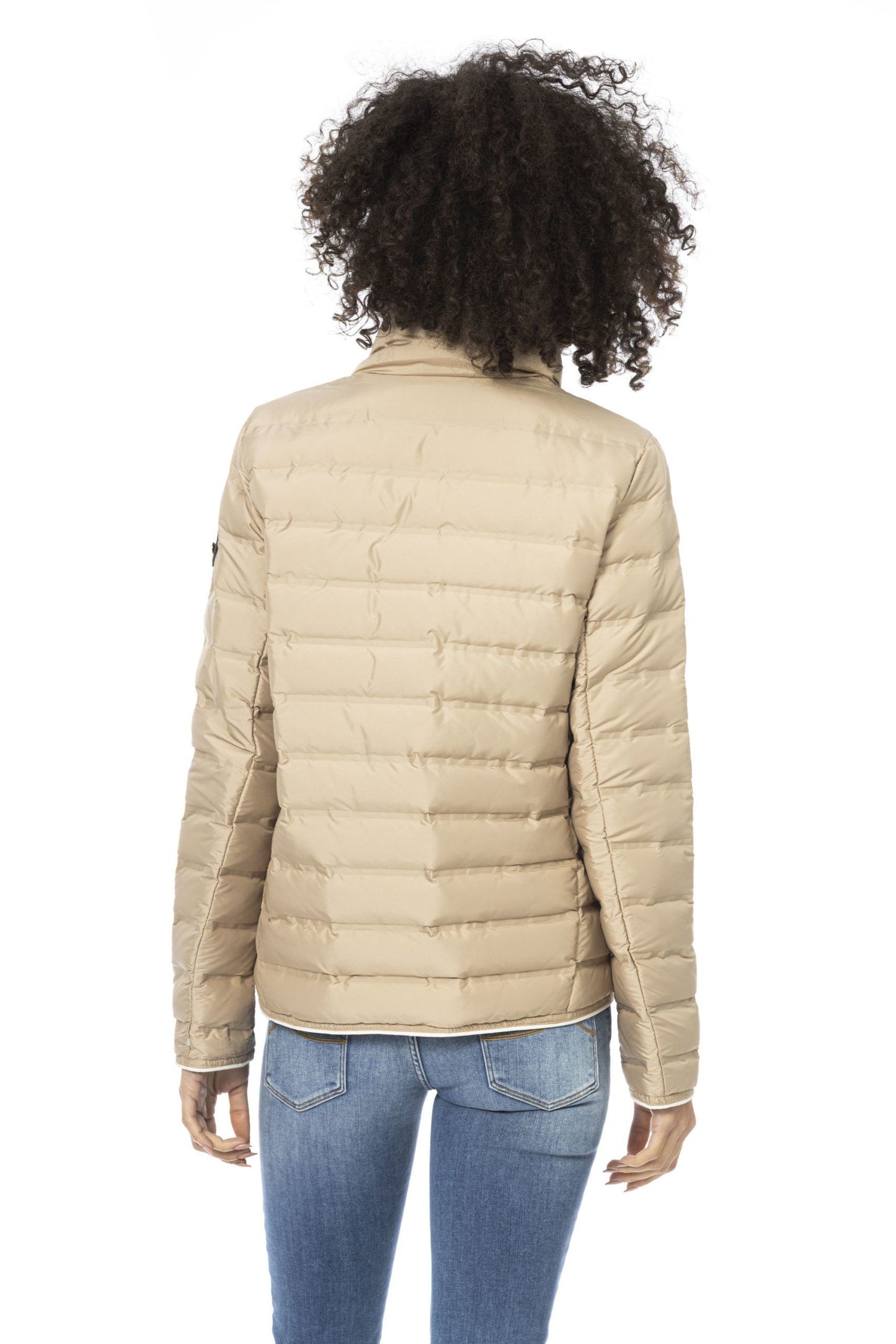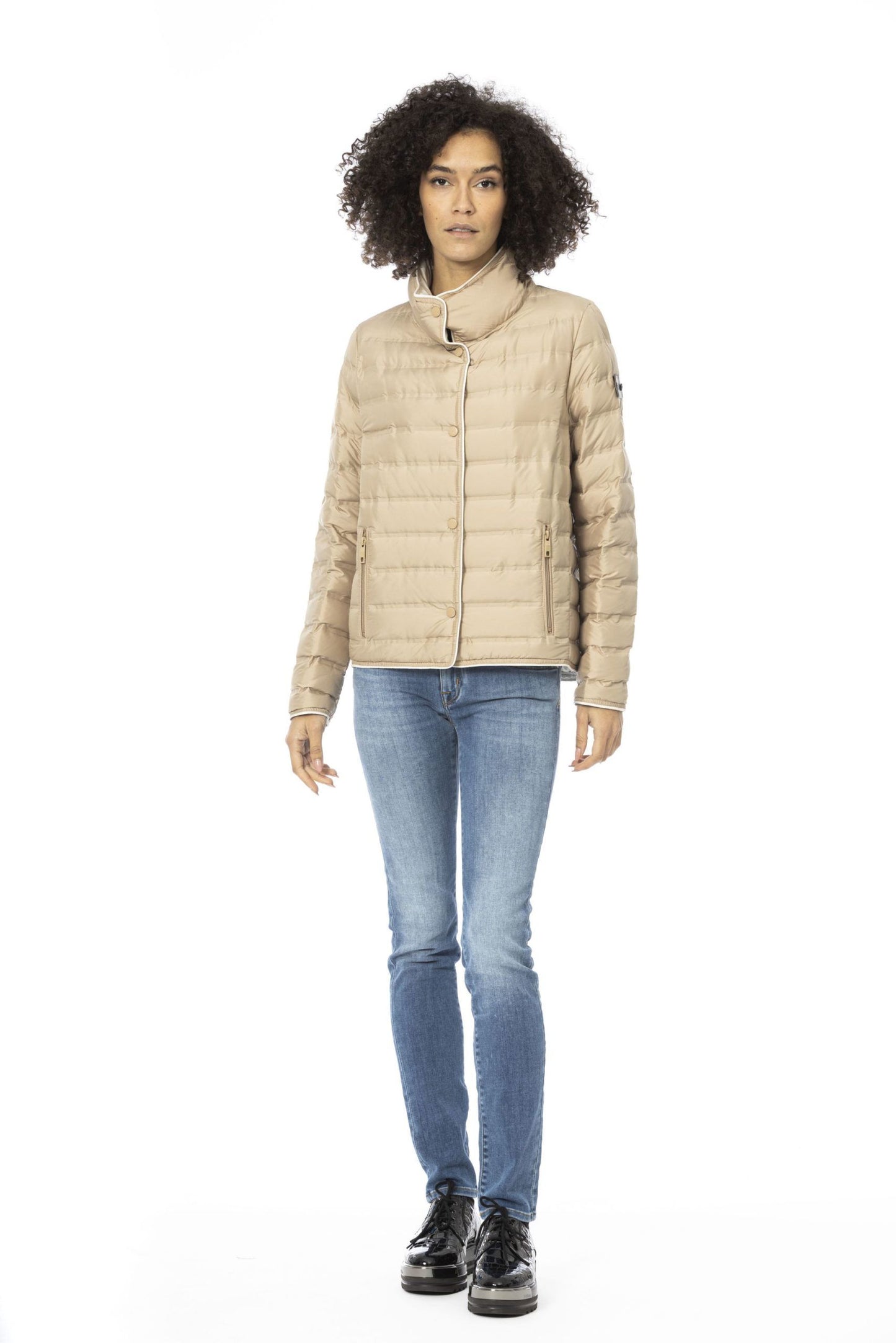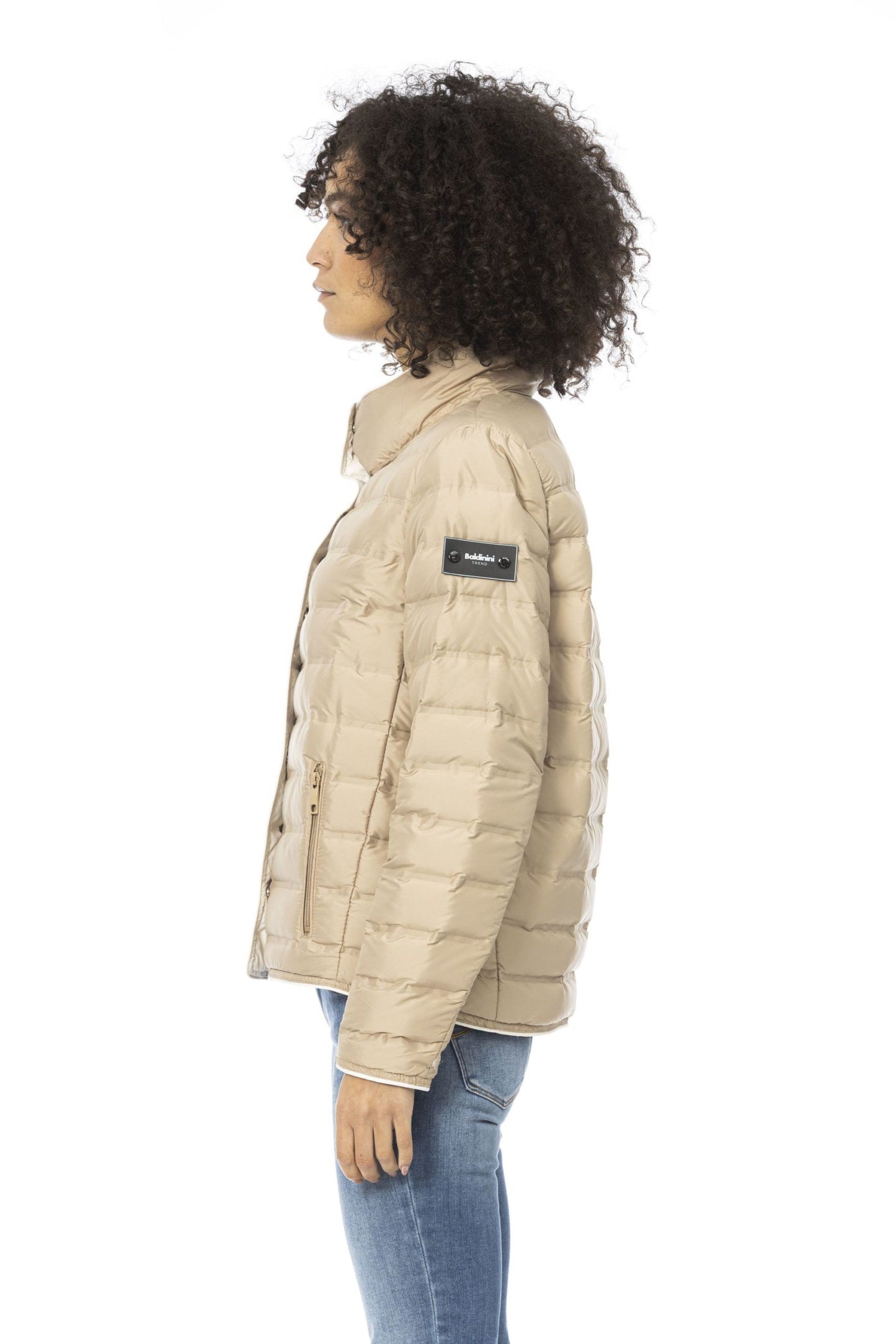 Discover the perfect blend of elegance and comfort with our Chic Beige Short Down Jacket. This stylish piece boasts external welt pockets, a sleek design without a hood, and a distinctive Baldinini Trend metal monogram as a hallmark of quality and luxury. Its button front closure adds a classic touch to this contemporary piece, making it an essential addition to any fashion-forward wardrobe.