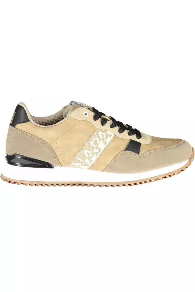 Beige Lace-Up Sports Sneakers with Logo Accent