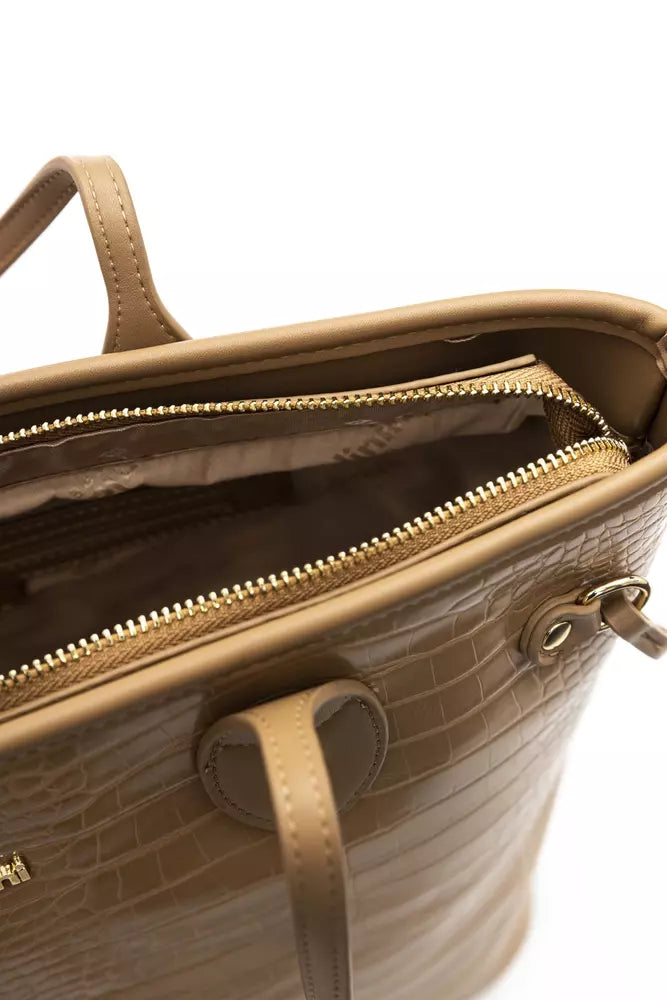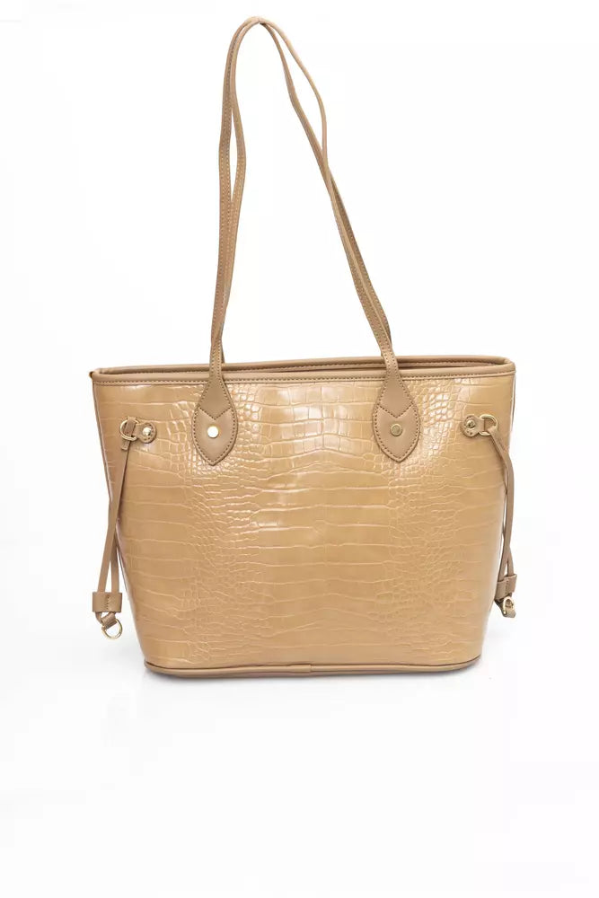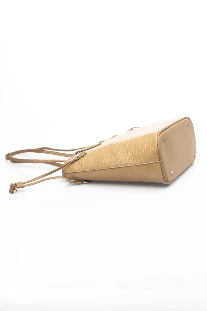 Elegant Beige Shoulder Bag with Golden Accents