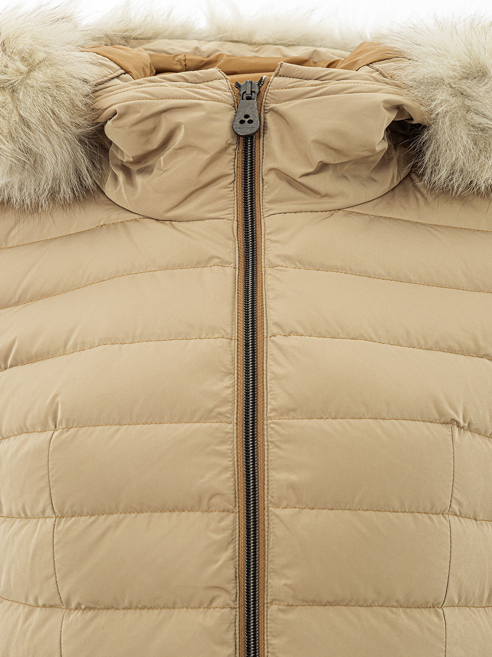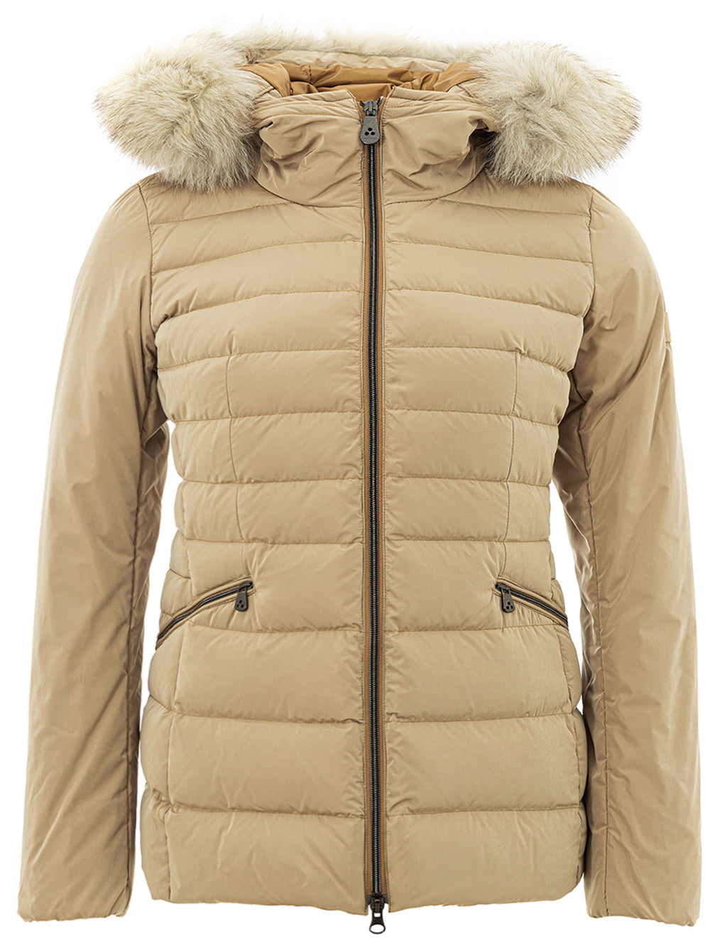 Discover the elegance of Peuterey in this stunning beige quilted jacket, featuring a luxurious detachable fur collar and a flattering inner strap at the waist. Perfect for adding a touch of sophistication to any outfit, this jacket is designed to keep you warm and stylish. The front zip closure and side pockets blend functionality with fashion, making it an essential addition to your wardrobe.