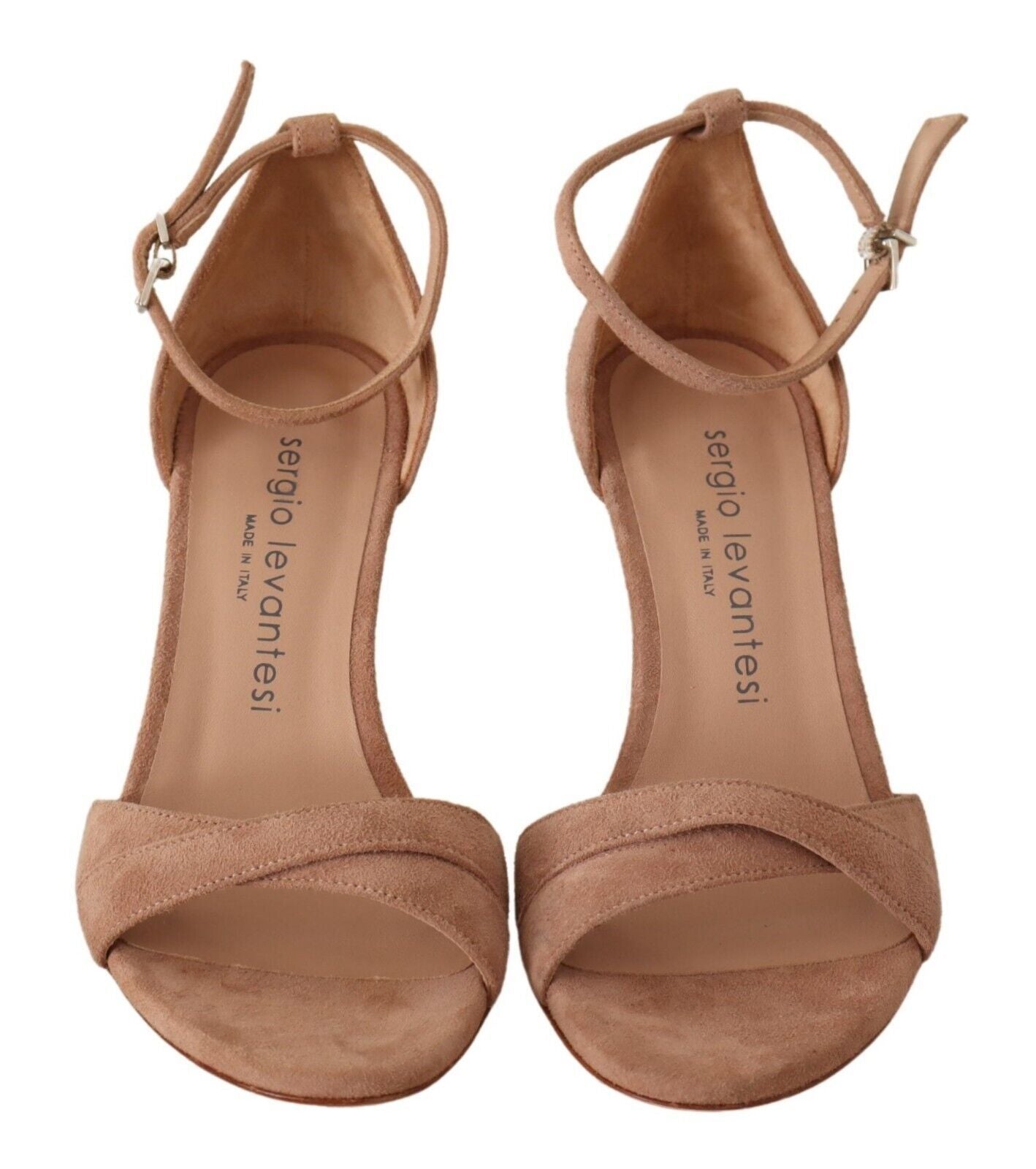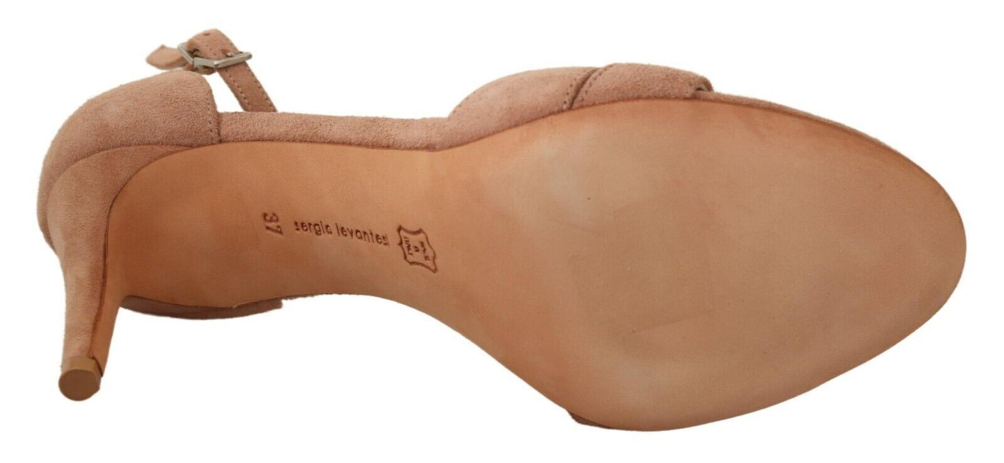 Elevate your style with these stunning beige suede ankle strap pumps from SERGIO LEVANTESI. Brand new with tags and crafted from 100% Authentic leather, these heels are the epitome of luxury and elegance. Perfect for any occasion, they will add a touch of sophistication to your wardrobe. The delicate ankle strap ensures a secure fit, while the leather sole promises durability and comfort. Complete with subtle logo details, these pumps are a true testament to exquisite craftsmanship.
