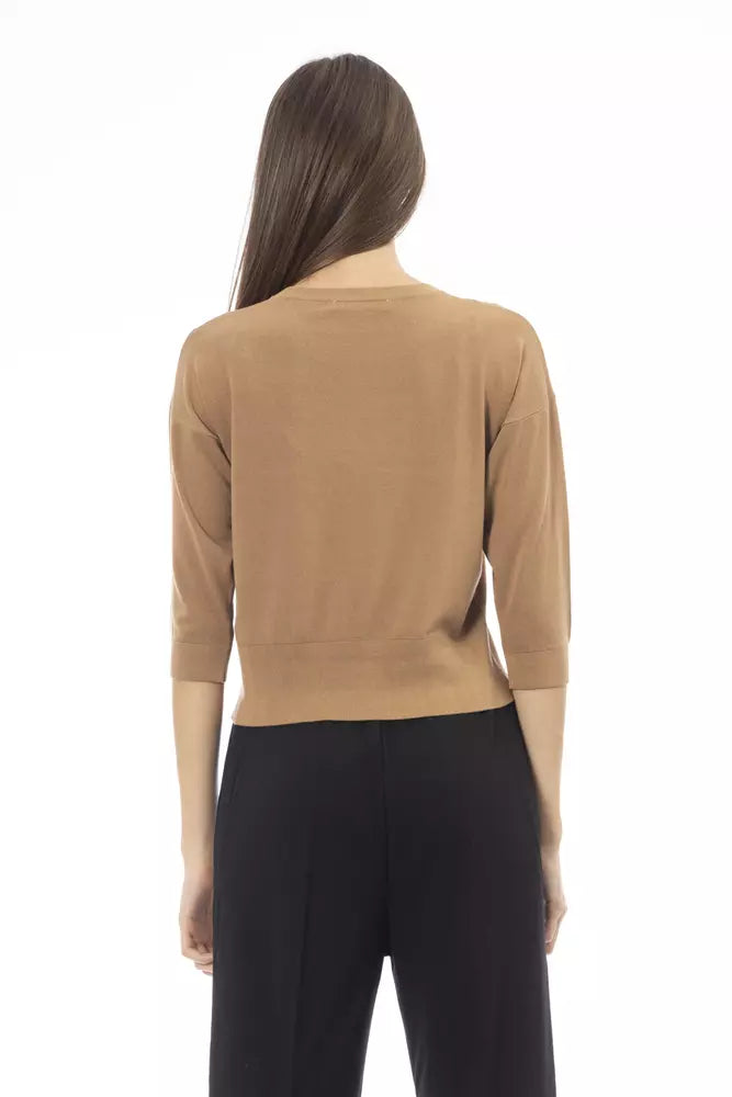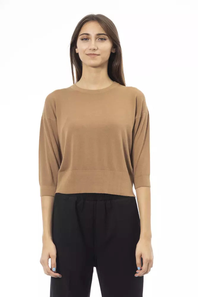 Exude effortless elegance with Alpha Studio’s chic Beige Crew Neck Sweater. Perfect for those who appreciate timeless style mingled with comfort, this piece features short sleeves and is delicately finished with fine ribbed details at the collar, cuffs, and bottom hem. Crafted from a luxurious blend that ensures both stretch and durability, it’s an ideal addition to your sophisticated wardrobe.